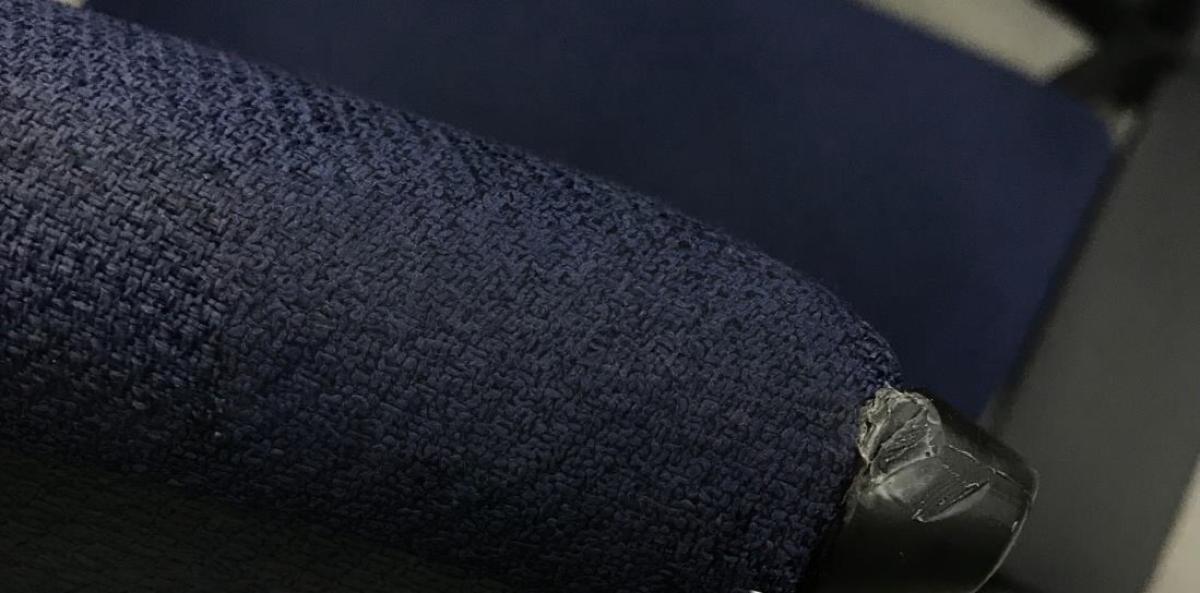 - あり黄ばみ・変色が広い範囲にうっすらある、または濃い黄ばみ・変色が一部ある。(例、座面・背もたれ、脚部等にある。)