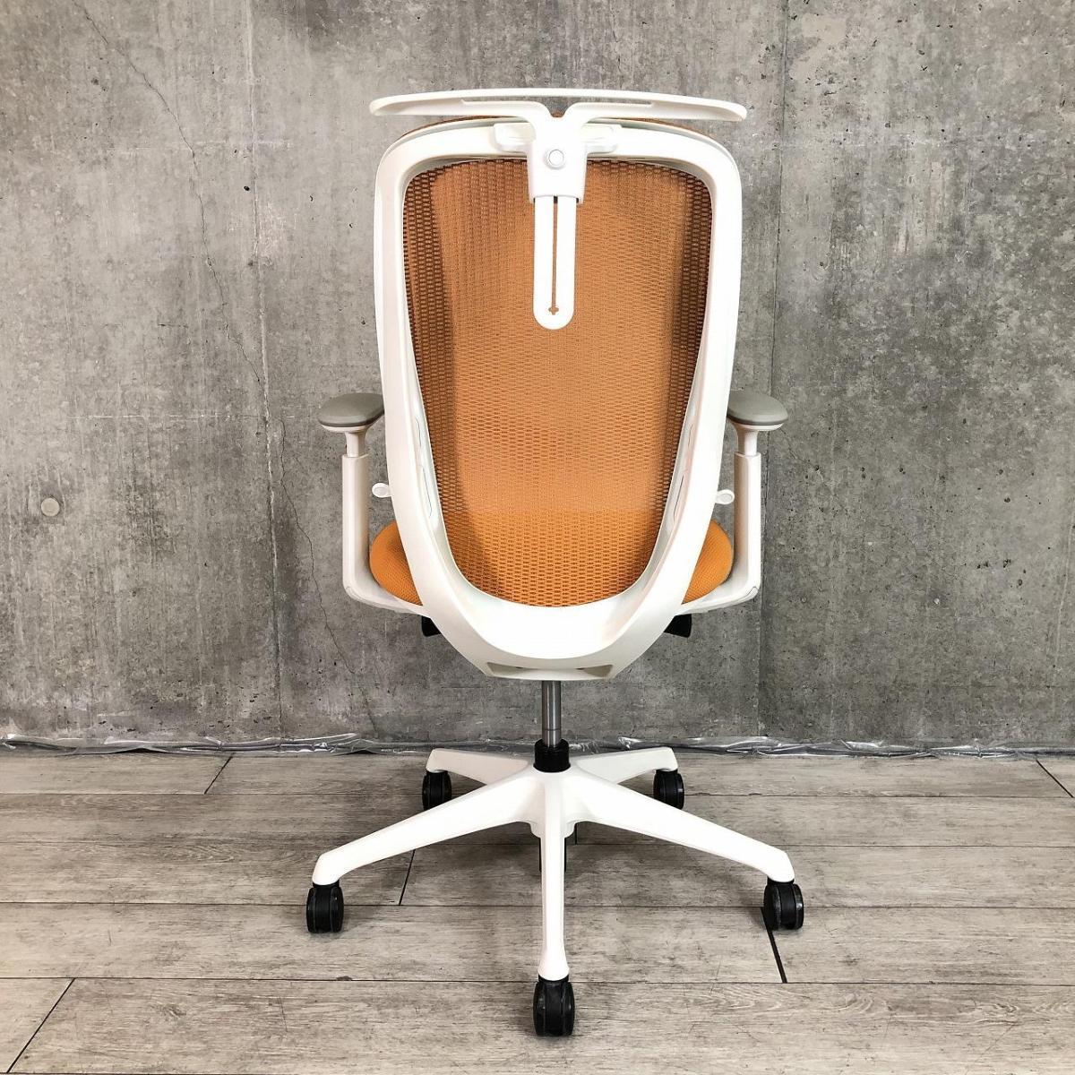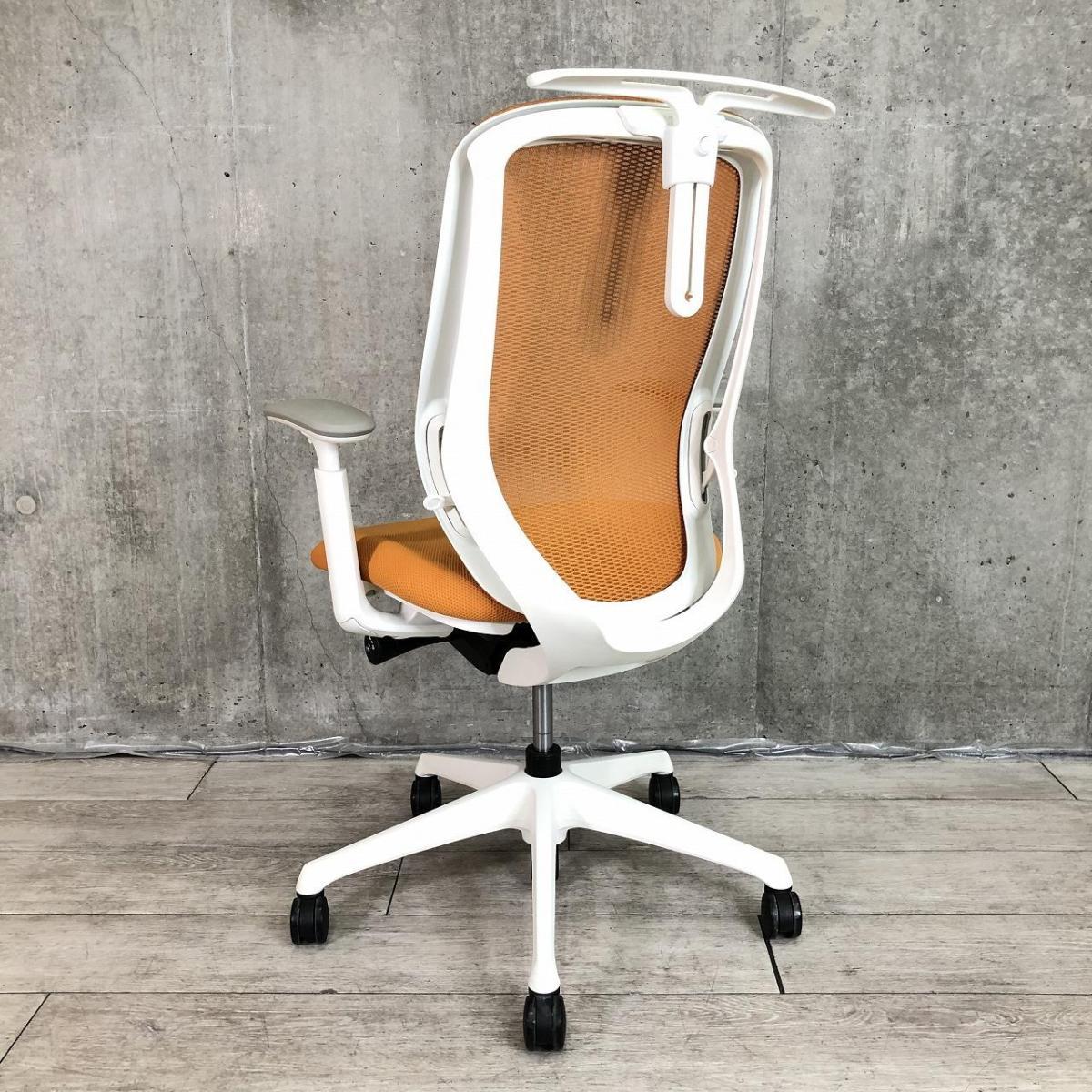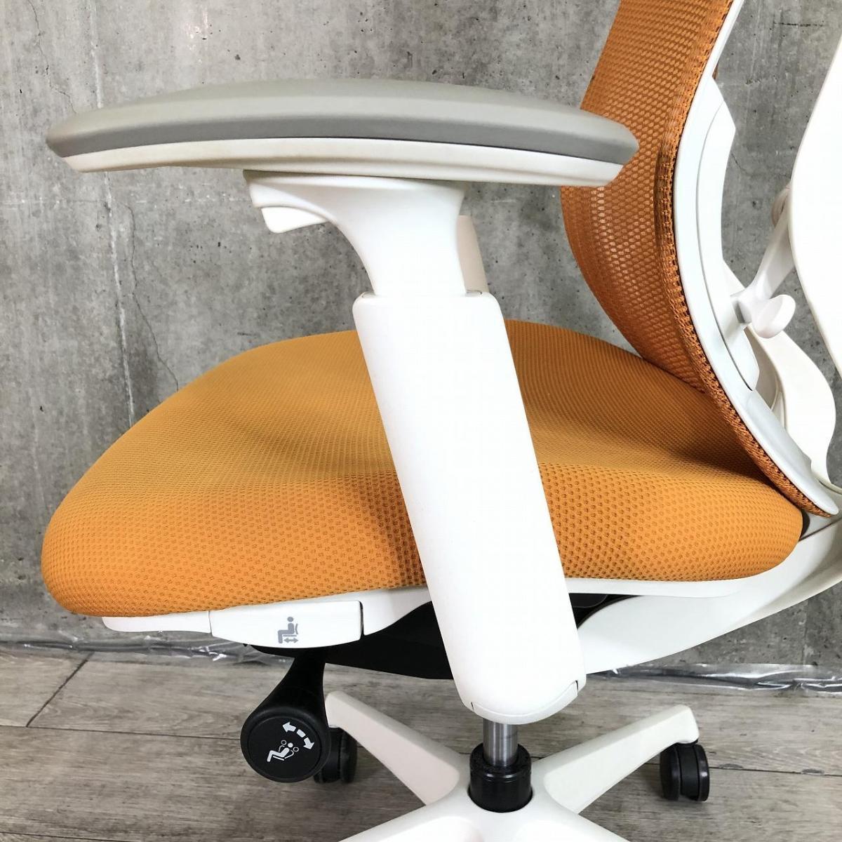 【前傾チルト機能付き】【オカムラ製品で最も人気を集める高機能メッシュチェア!】■オカムラ(okamura)製 シルフィ(Sylphy)チェア 肘付き ハイバック 背面メッシュ ■可動肘・ハンガー付き ■オレンジ×ホワイトシェル