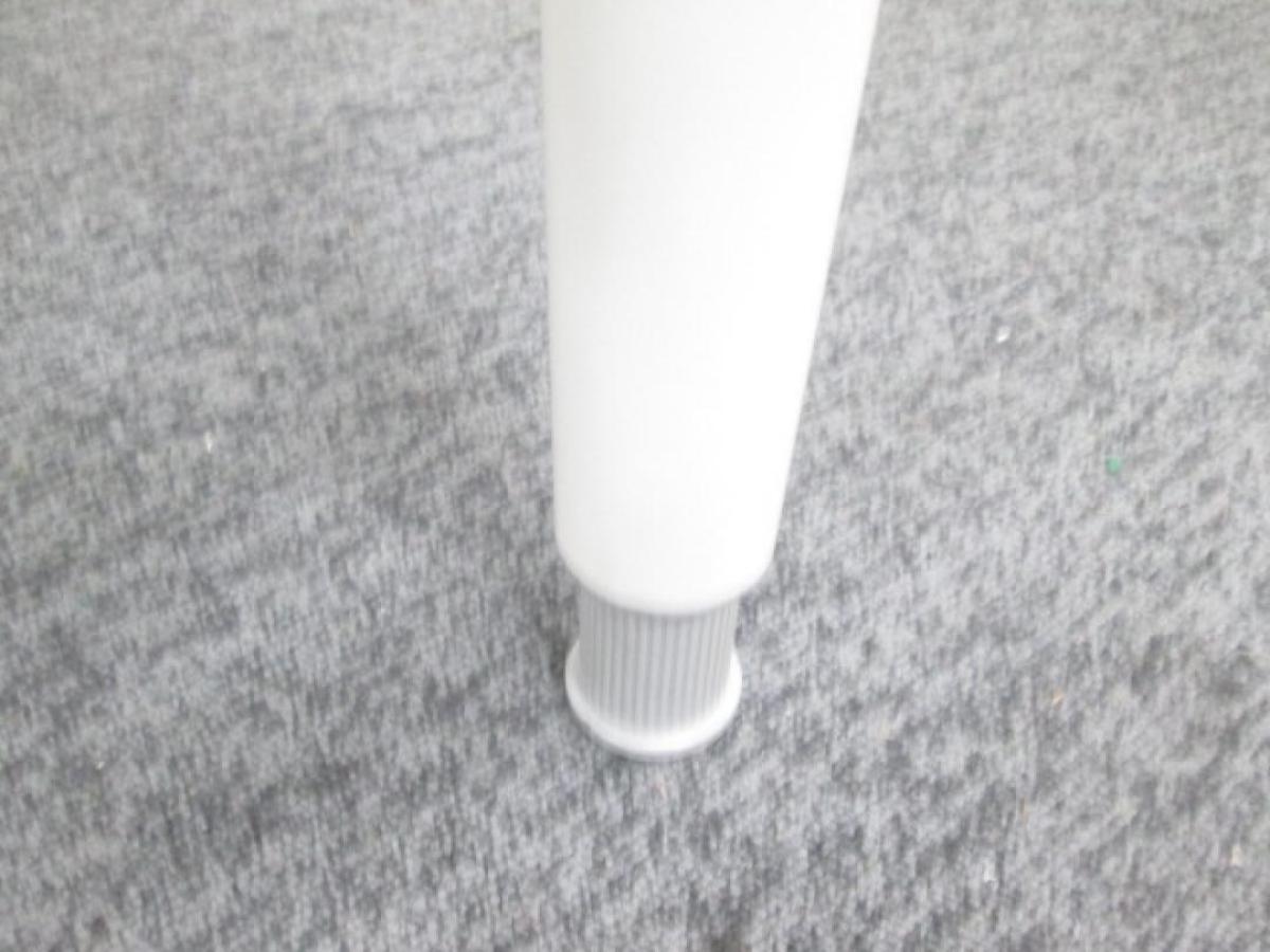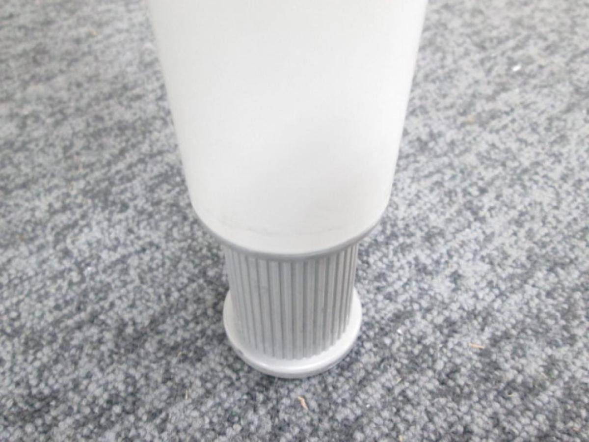 - 一部不具合あり天板歪み、アジャスター無し、キャスター使用不可ようなそのテーブルの本来の効用を果たすための機能以外の一部が使用不可な状態。(例、キャスターロッ ク機能使用不可、棚板無し等がある。)