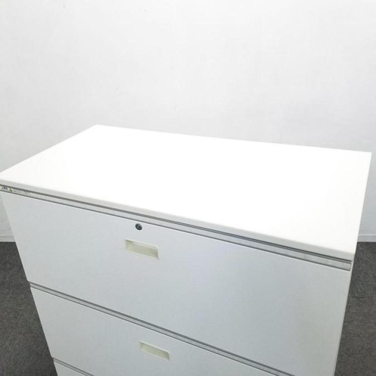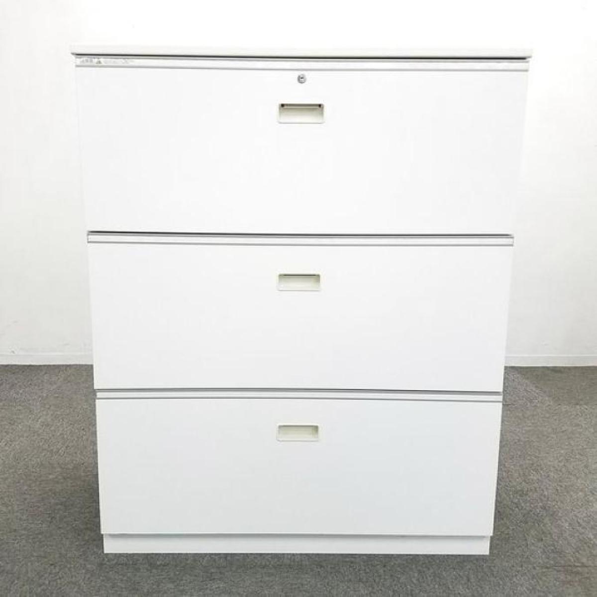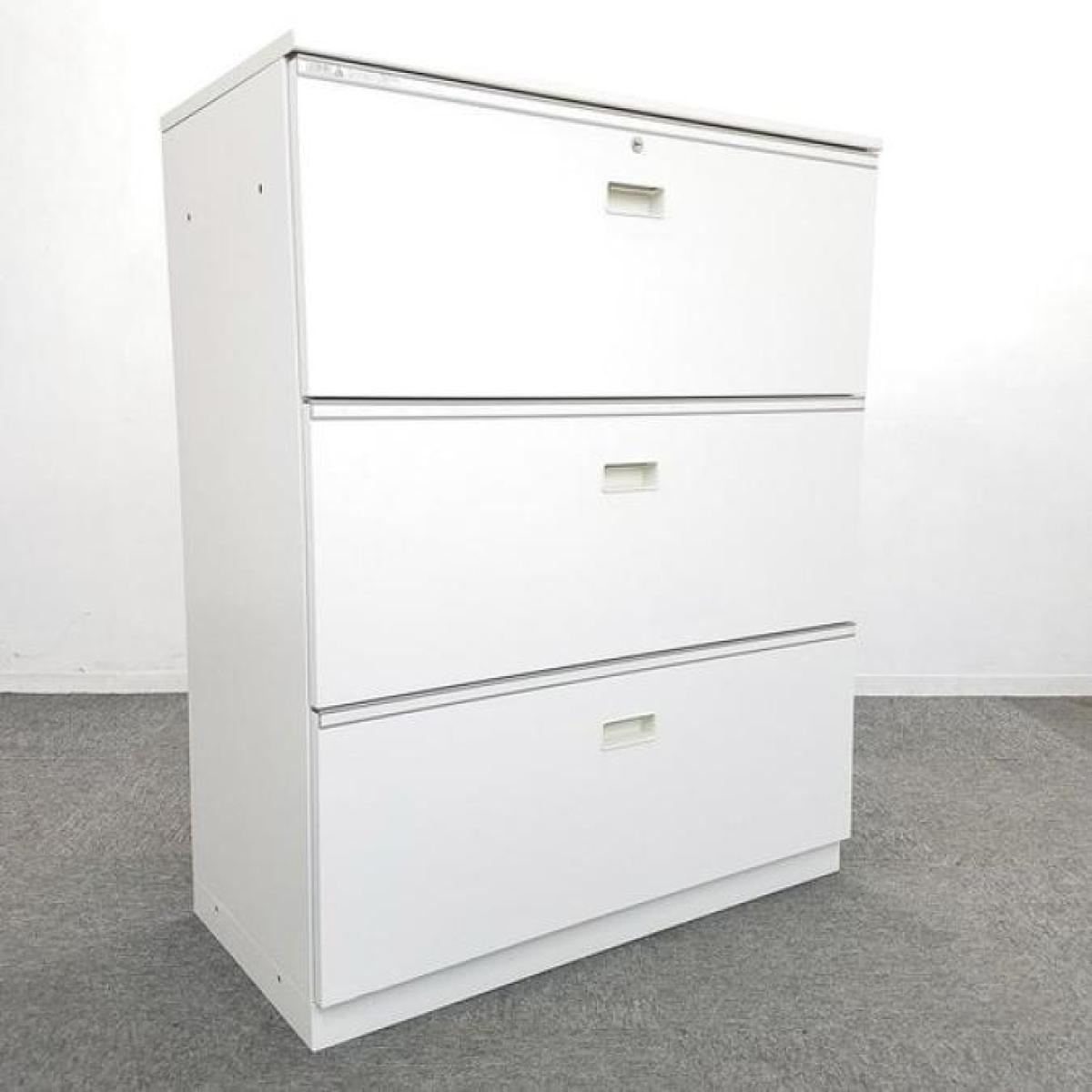 イトーキ シンライン 3段ラテラル書庫 ホワイト 天板無し シリンダー錠 鍵付き ※取っ手部分に日焼けあり ※写真は天板付きですが、実物は天板無しです