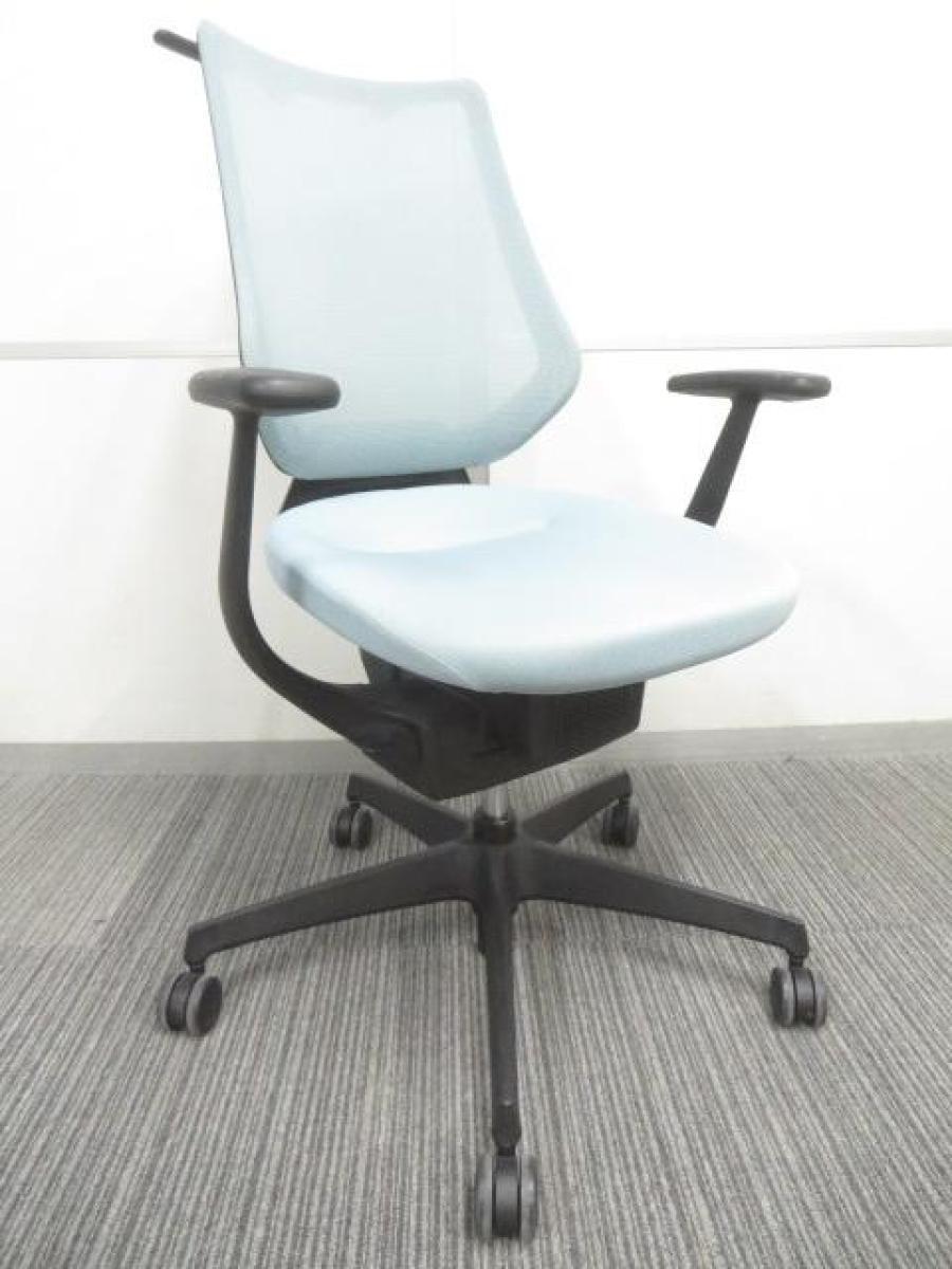 話題のチェア/在宅勤務/希少 コクヨ(KOKUYO)製 イング(ing)チェア 肘付ハイバック バーチカルタイプ ■背メッシュ・座面クッション ■アッシュターコイズ 樹脂脚
