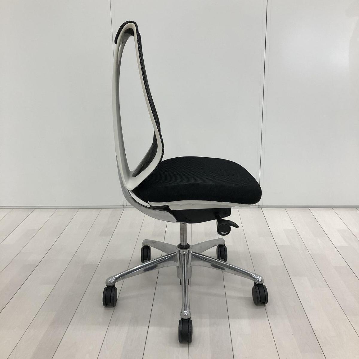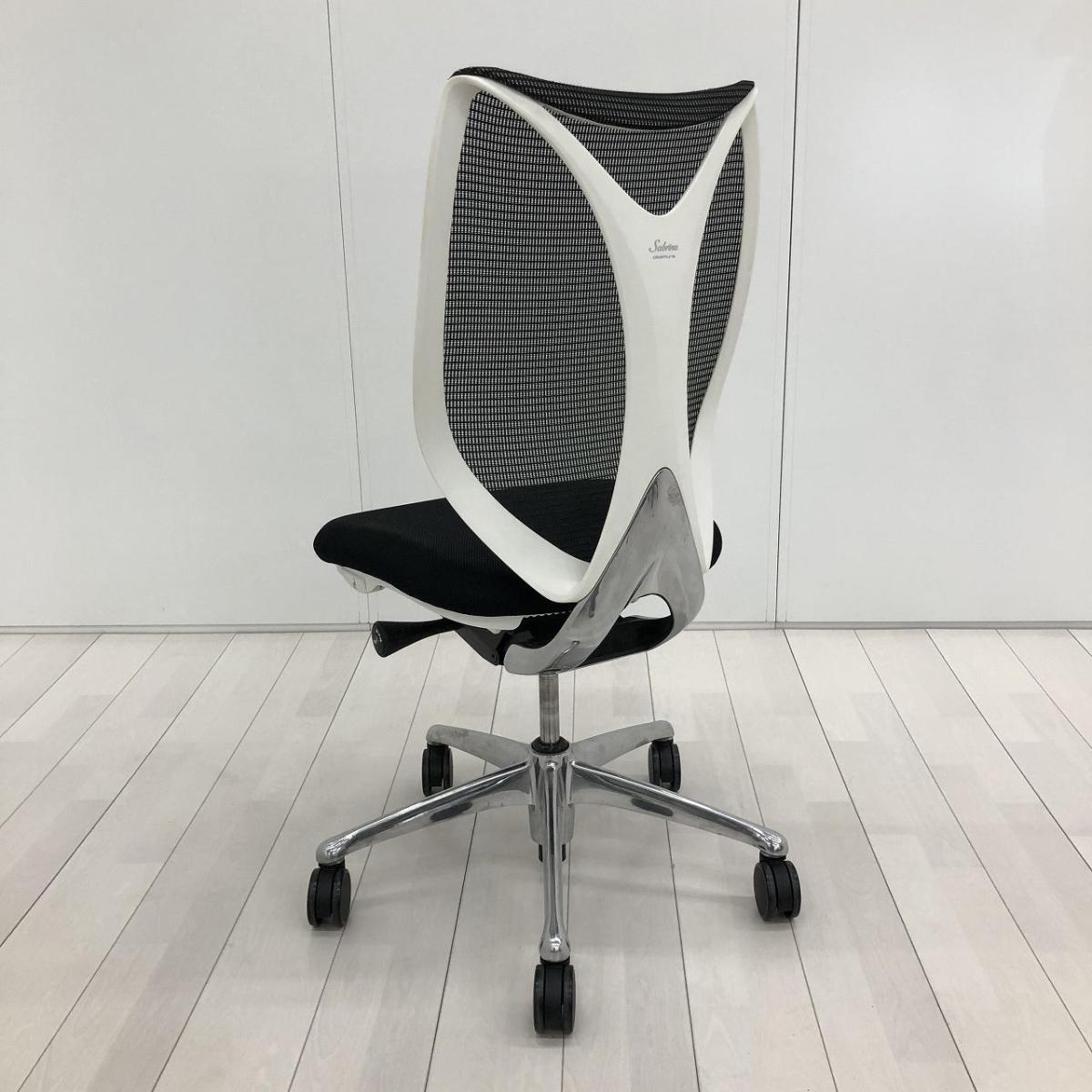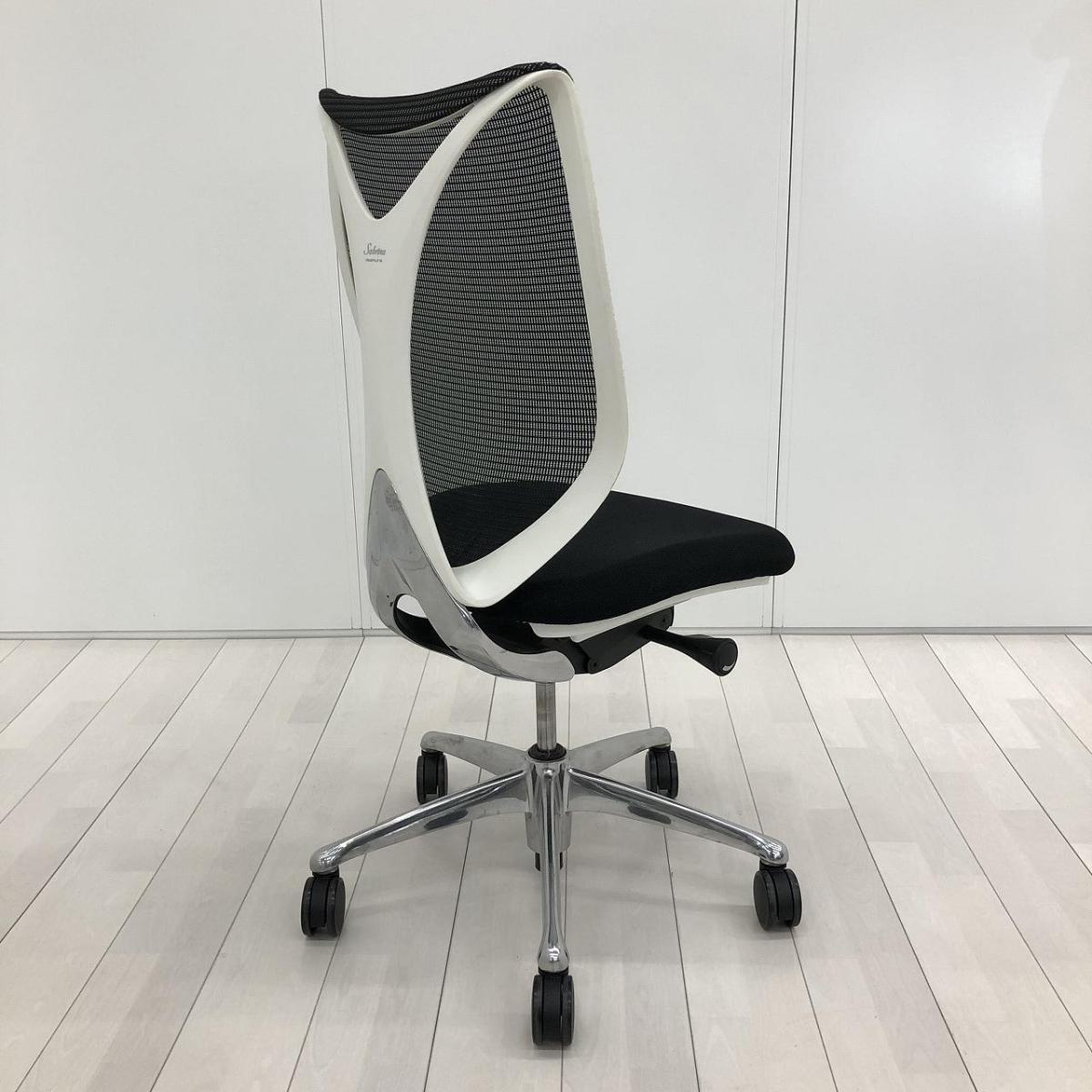 【流れるような美しいフォルムの最高級メッシュチェア!前傾チルト付きで作業効率アップ!】■オカムラ(okamura)製 サブリナシリーズ 肘無しハイバック ■背面メッシュ ■ブラック×ホワイトシェル オフィスバスターズ神戸三宮店