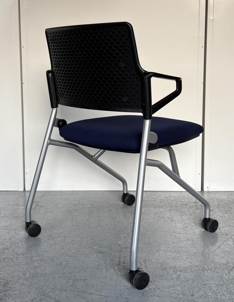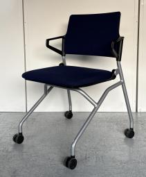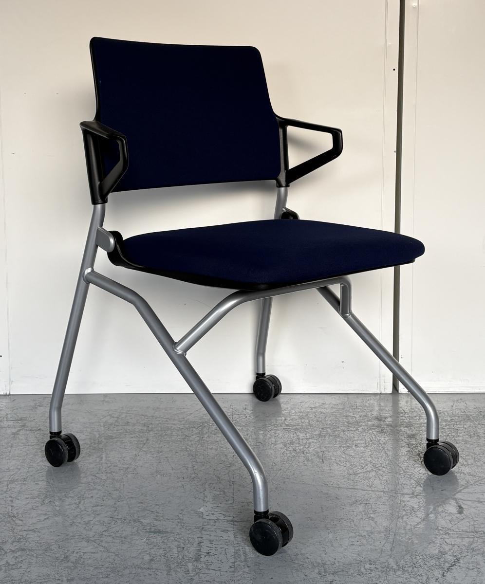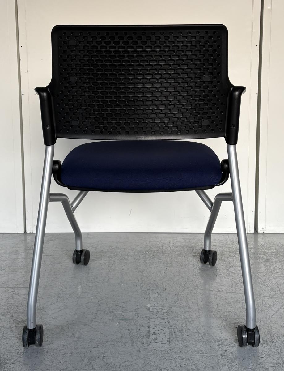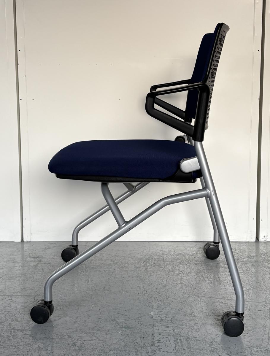【使わないときは折り畳んで収納!キャスター付だから動作も楽々!】■ウチダ(UCHIDA)製 FM-345シリーズ ネスティングチェア ミーティングチェア ■背パッド/リング肘/キャスター付き ■ネイビーブルー- 神戸・三宮店