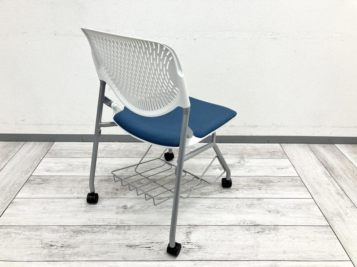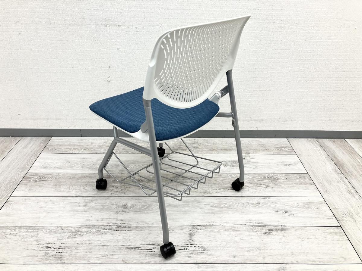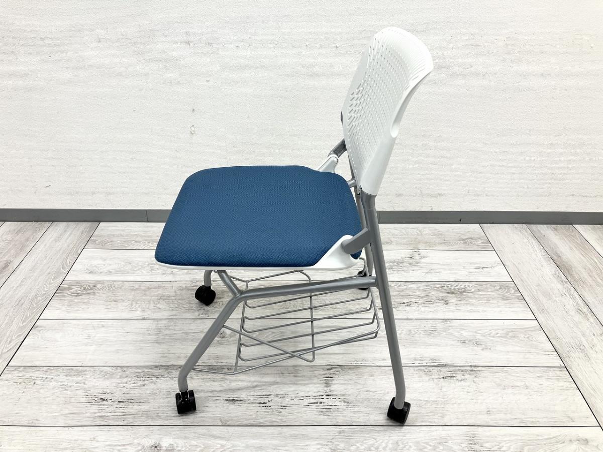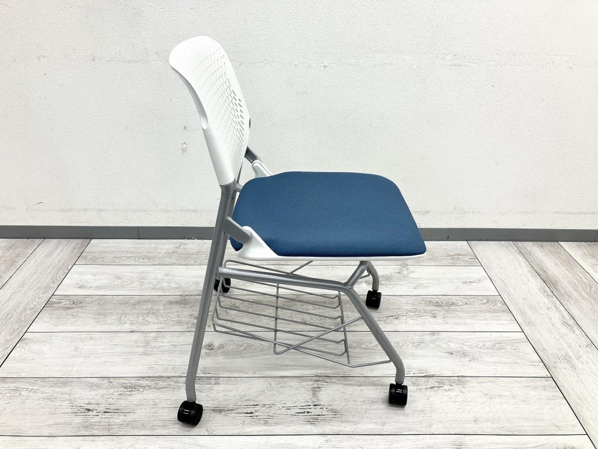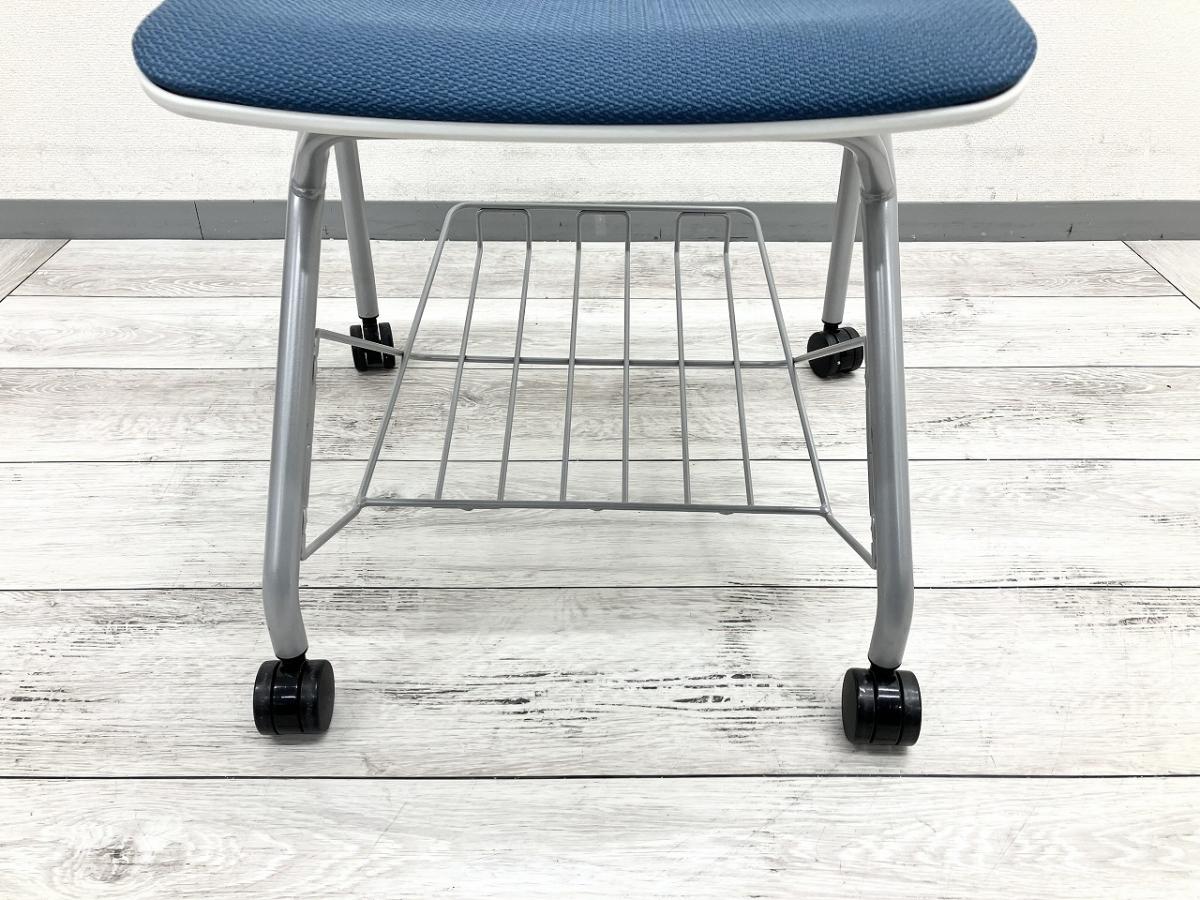 【フレキシブルに使えるキャスター付!】■オカムラ ルナシリーズ ネスティングチェア ブルー ■便利に使える!足元棚付き! ルナチェア【ABW】