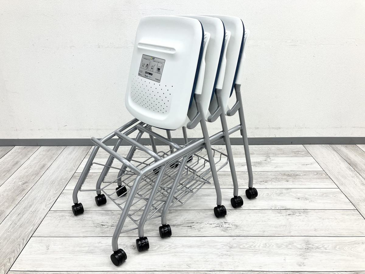 【在庫入替えセール!】【使わない時はコンパクトに収納!】人気の色のネスティングチェア! ■オカムラ/ルナ/ブルー【AD】
