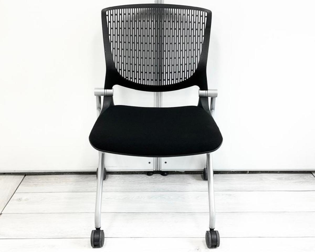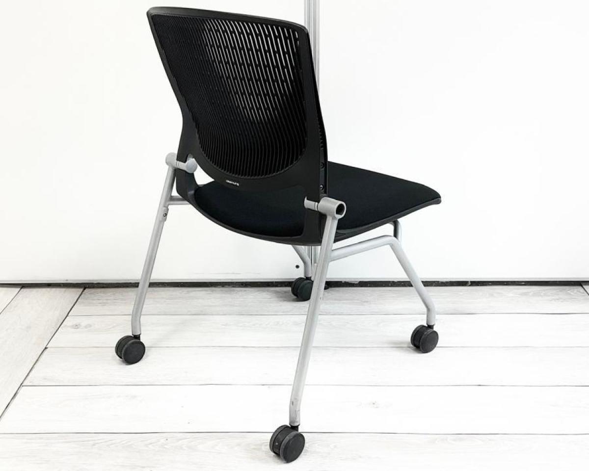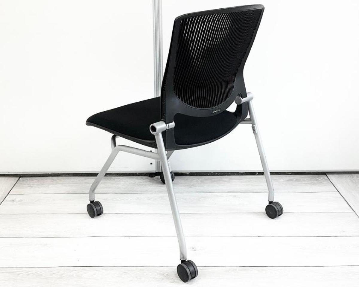 【座面がたためるネスティング仕様!】【定番人気のブラックカラー! スタイリッシュで快適な座り心地のチェアが大量入荷!】【会議室にもおススメ!】■オカムラ(okamura)製 グラータ(Grata)チェア ネスティングチェア ■ブラック ■背面樹脂メッシュ ■キャスター付 ■背パッド付き 【レイアウト変更・ご移転の際などにおススメです!】