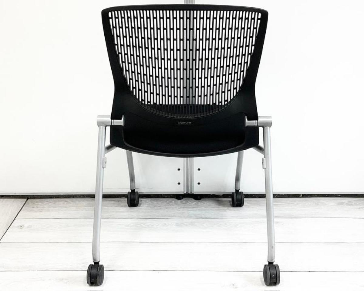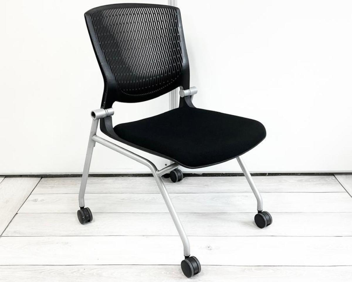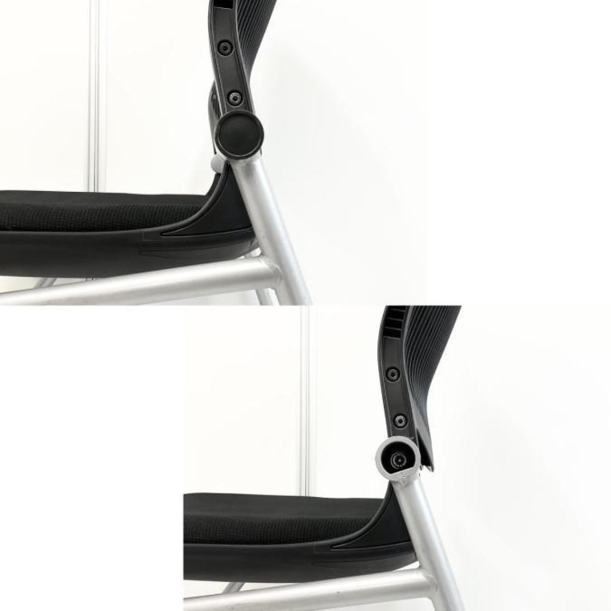 【座面がたためるネスティング仕様!】【定番人気のブラックカラー! スタイリッシュで快適な座り心地のチェアが大量入荷!】【会議室にもおススメ!】■オカムラ(okamura)製 グラータ(Grata)チェア ネスティングチェア ■ブラック ■背面樹脂メッシュ ■キャスター付 ■背パッド付き 【レイアウト変更・ご移転の際などにおススメです!】