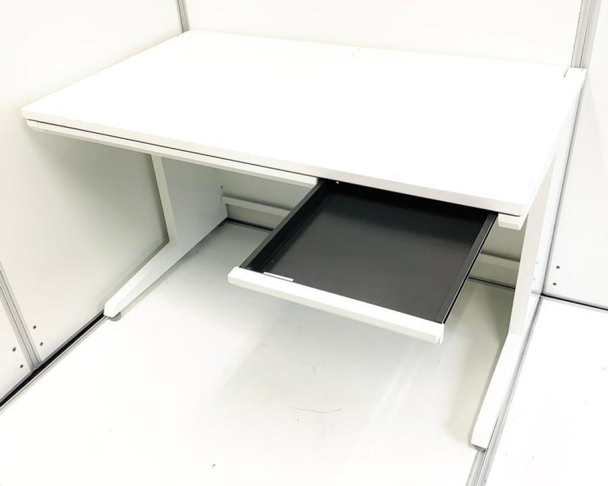人気オフィスデスク オカムラ アドバンス 平机 センター引き出し付きで収納も可能 ホワイト天板 W1200の使いやすい定番サイズ ※樹脂部分に日焼けあり