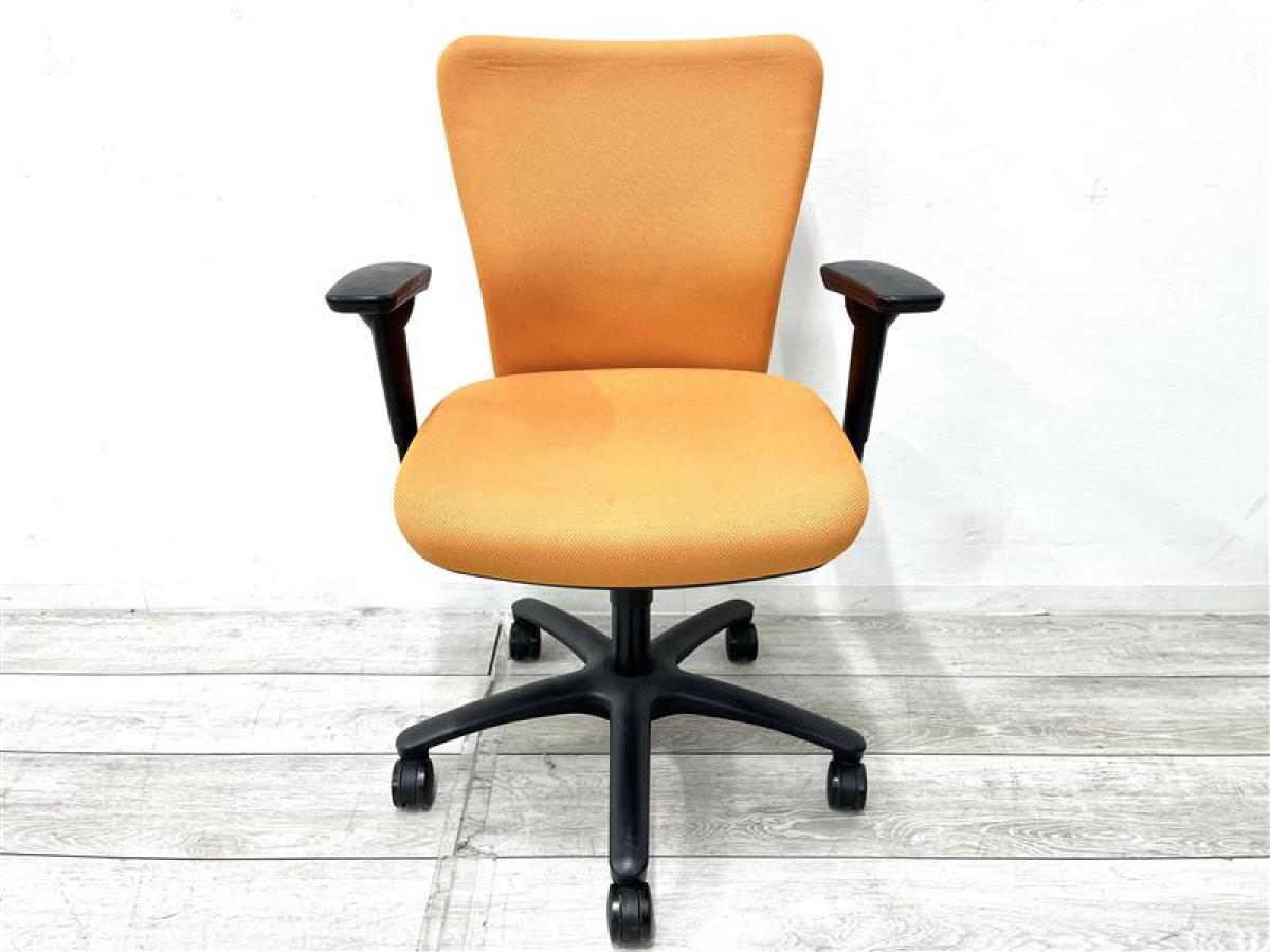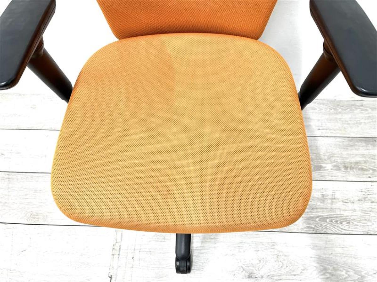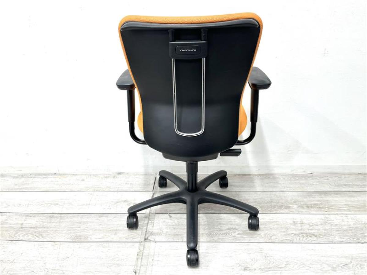 【定価約8万円】【人気シリーズの肘付きハイバックチェアの入荷です】■オカムラ製 カロッツァ 肘付きハイバックチェア ■オレンジ ■コートハンガー付き