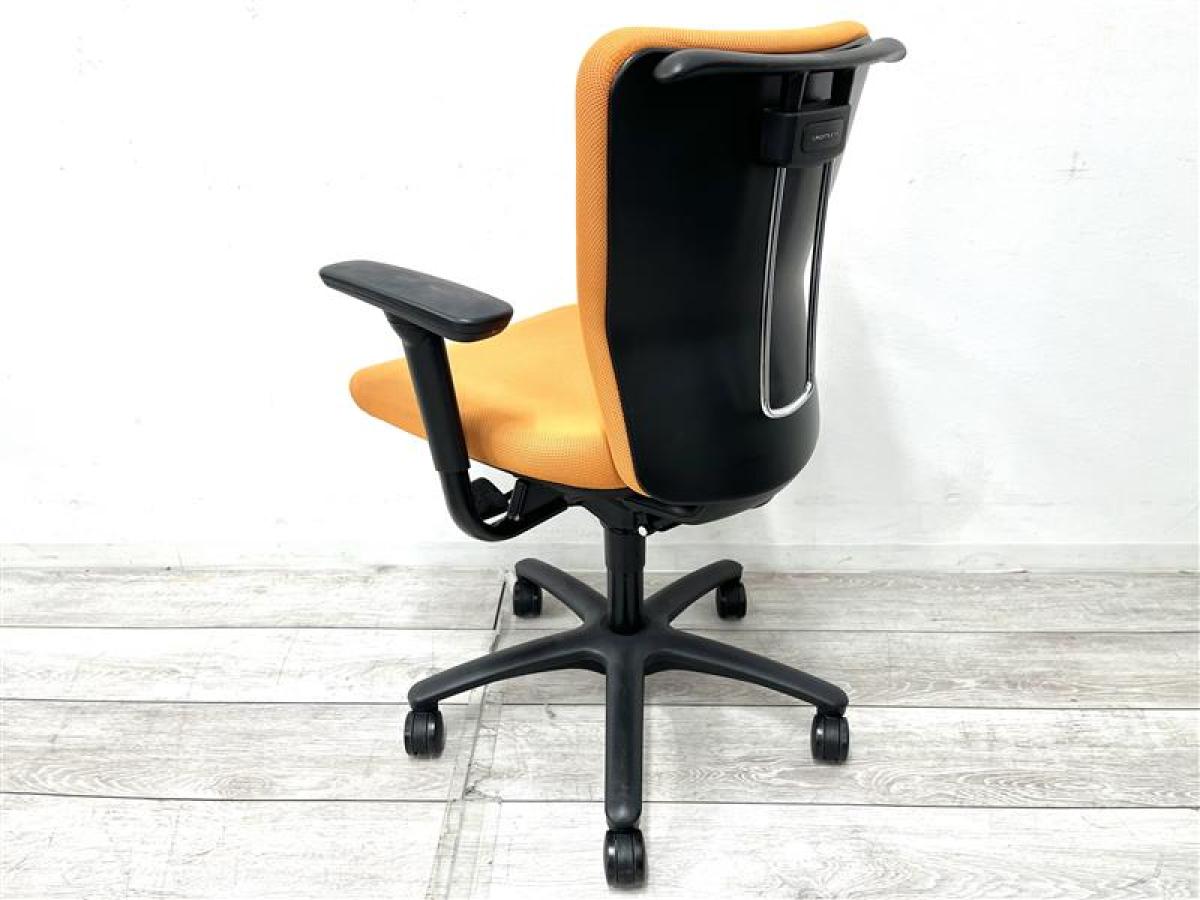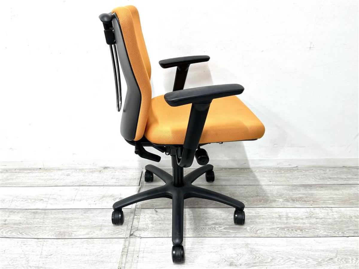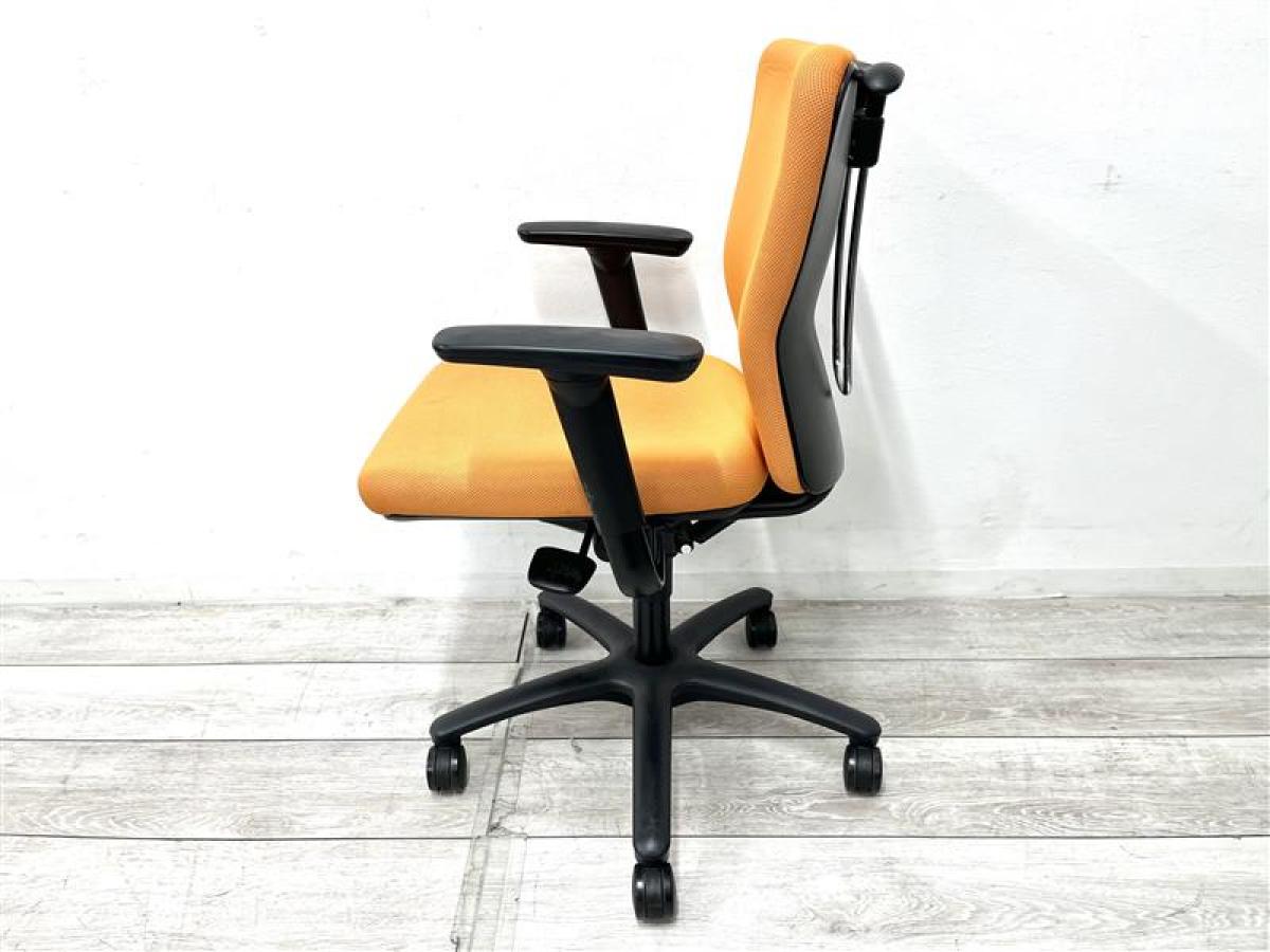 【定価約8万円】【人気シリーズの肘付きハイバックチェアの入荷です】■オカムラ製 カロッツァ 肘付きハイバックチェア ■オレンジ ■コートハンガー付き