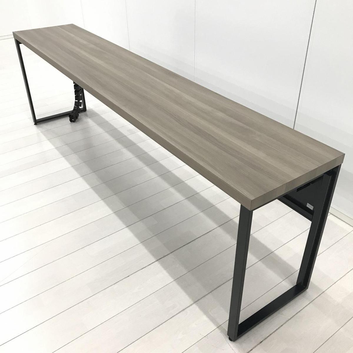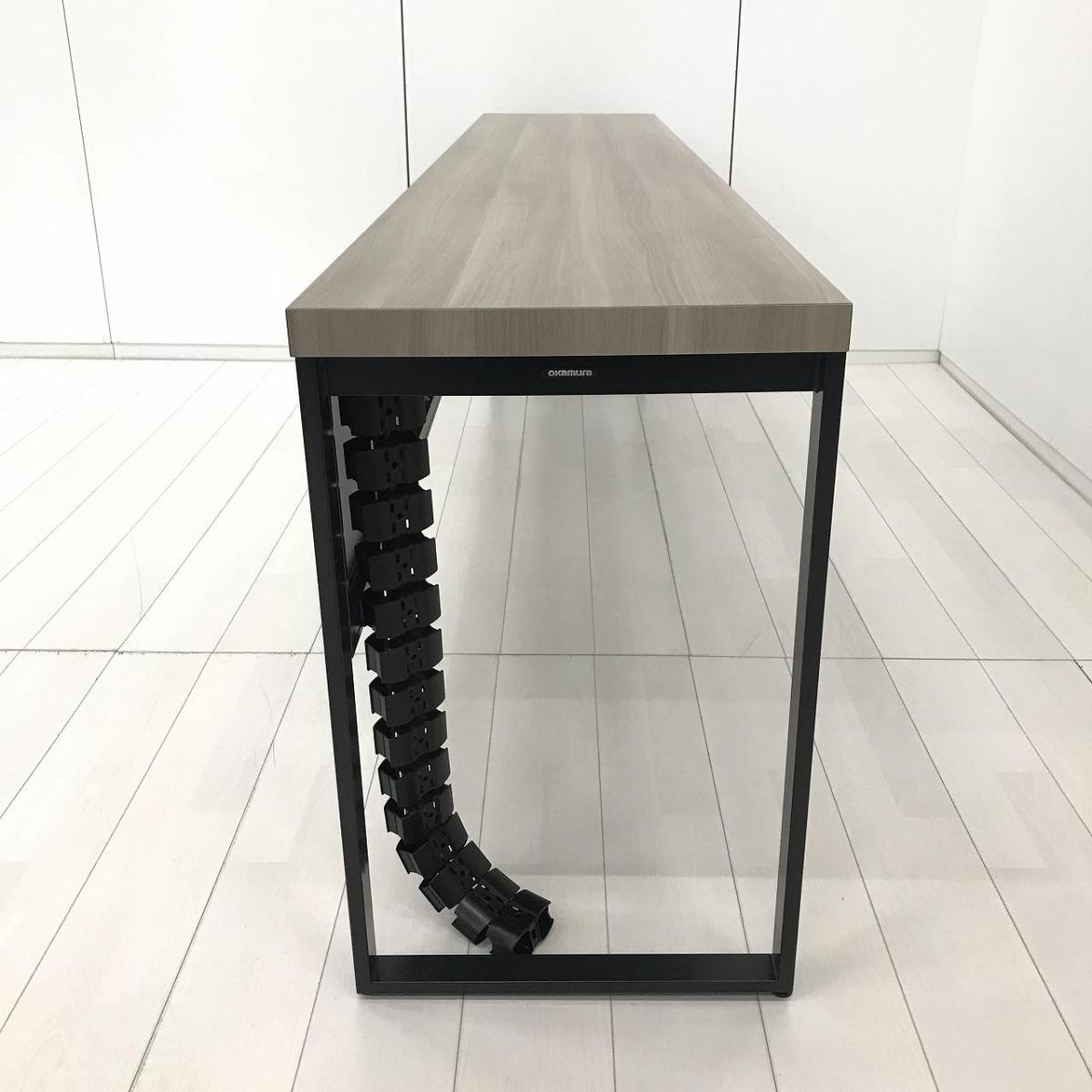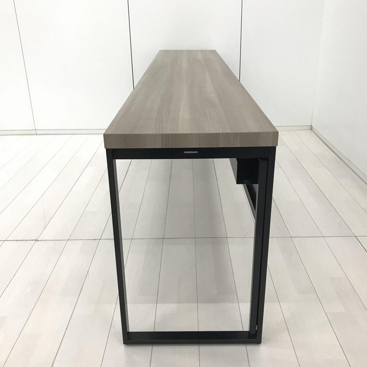 【令和トレンド】【リフレッシュスペースにお勧め!オシャレナデザインのカウンターテーブル!】■オカムラ(okamura)製 アルトピアッツァ(Alt Piazza)シリーズ カウンターテーブル W2400×D450×H720㎜ ■天板:木目ナチュラル/脚:ブラック※搬入経路にご注意ください【AD】