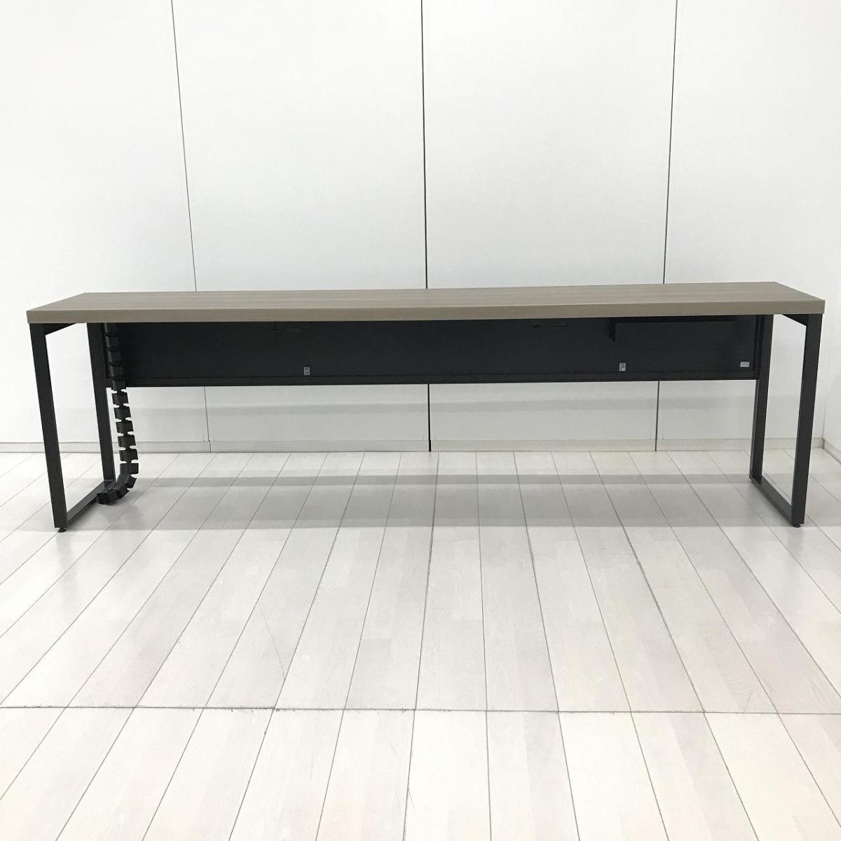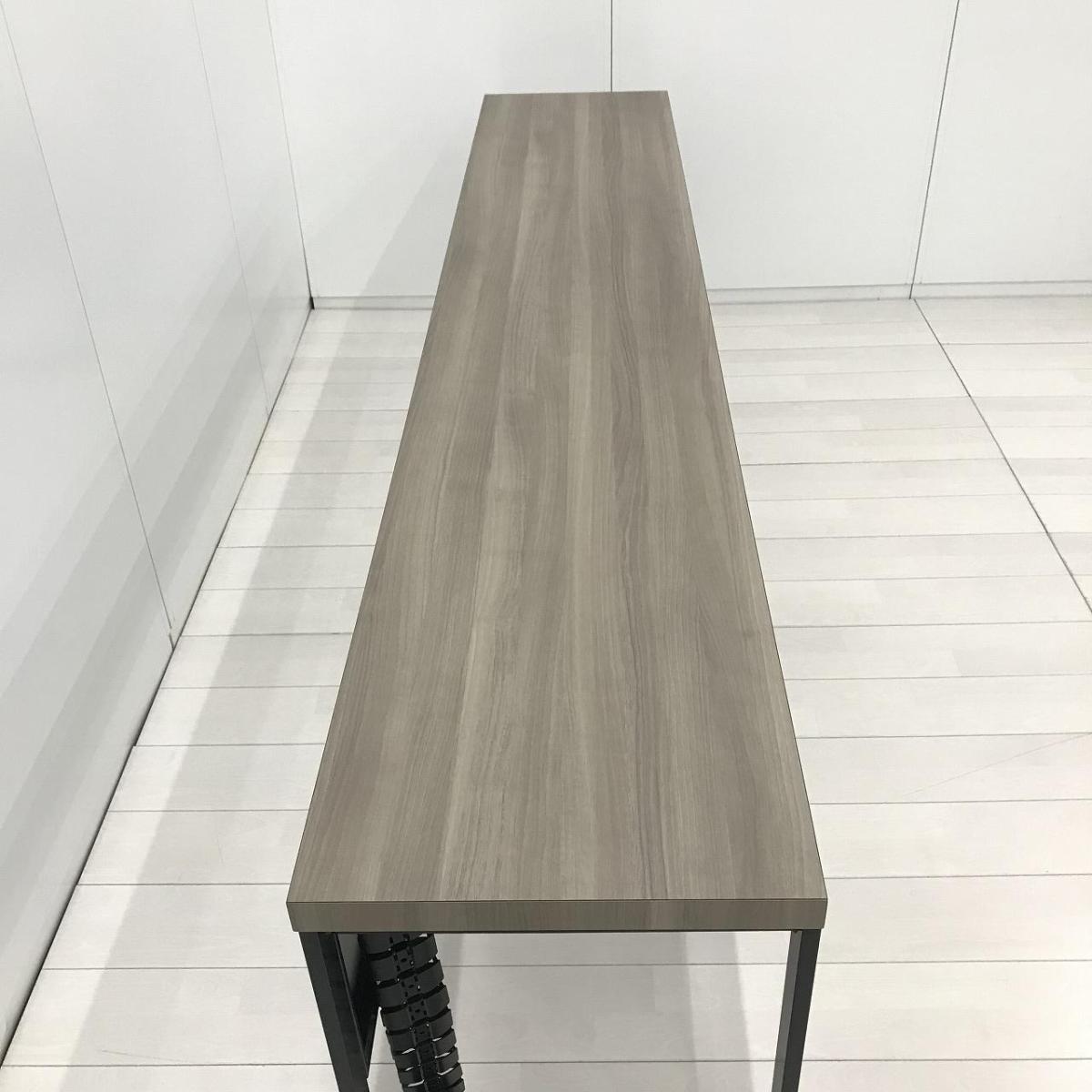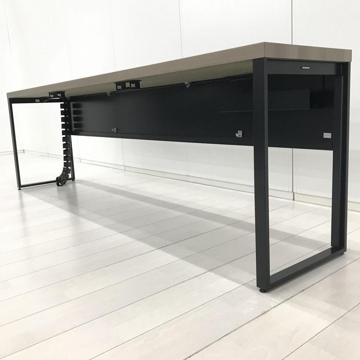 【令和トレンド】【リフレッシュスペースにお勧め!オシャレナデザインのカウンターテーブル!】■オカムラ(okamura)製 アルトピアッツァ(Alt Piazza)シリーズ カウンターテーブル W2400×D450×H720㎜ ■天板:木目ナチュラル/脚:ブラック※搬入経路にご注意ください【AD】