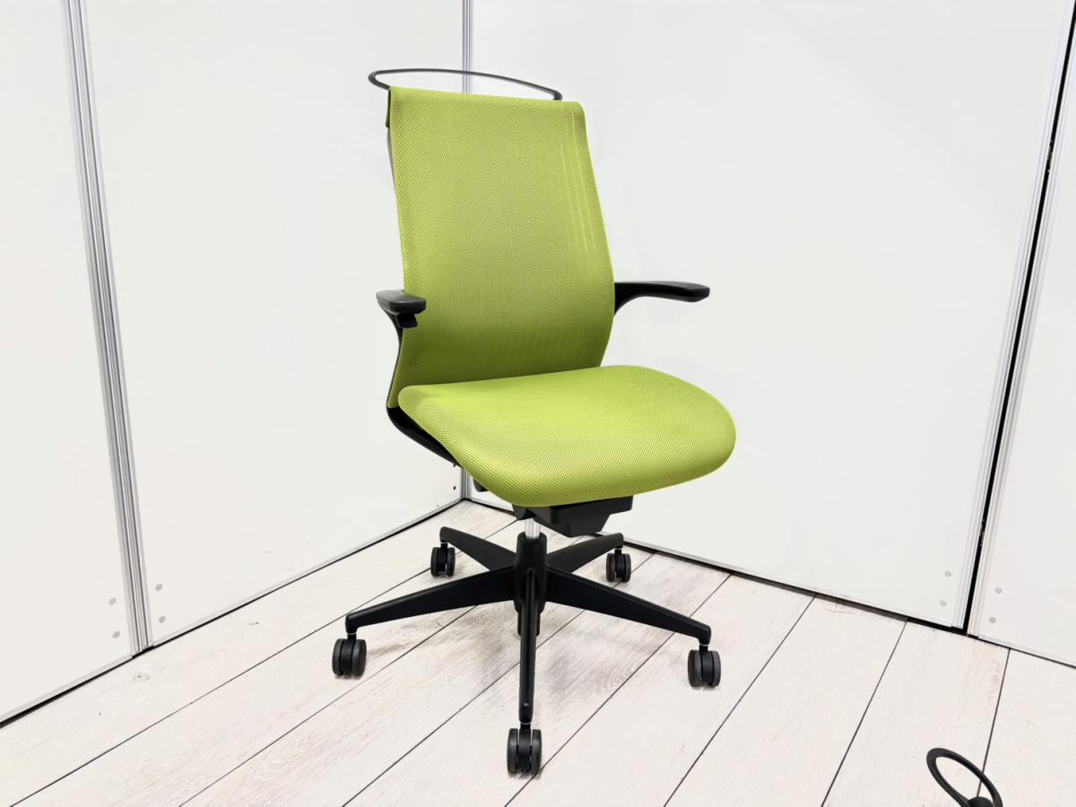 【定価約6万円】【手元でラクラク上下操作できます!】■コクヨ(KOKUYO)製 M4(エムフォー)チェア 肘付き ハイバック ■固定肘 ■リーフグリーン