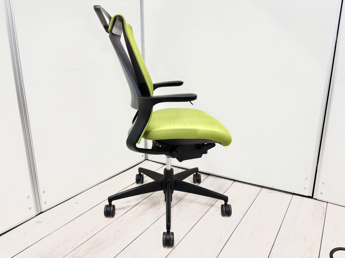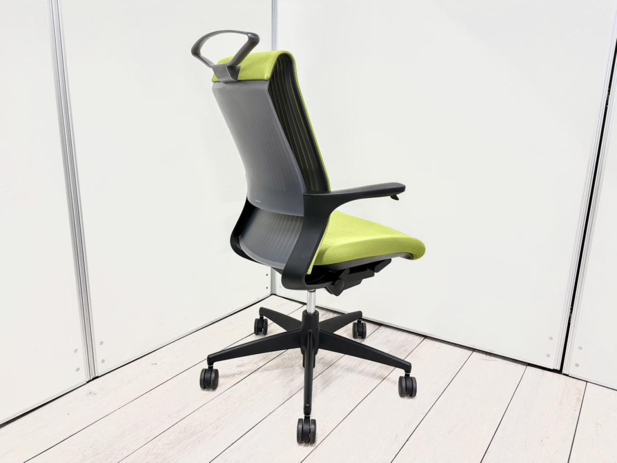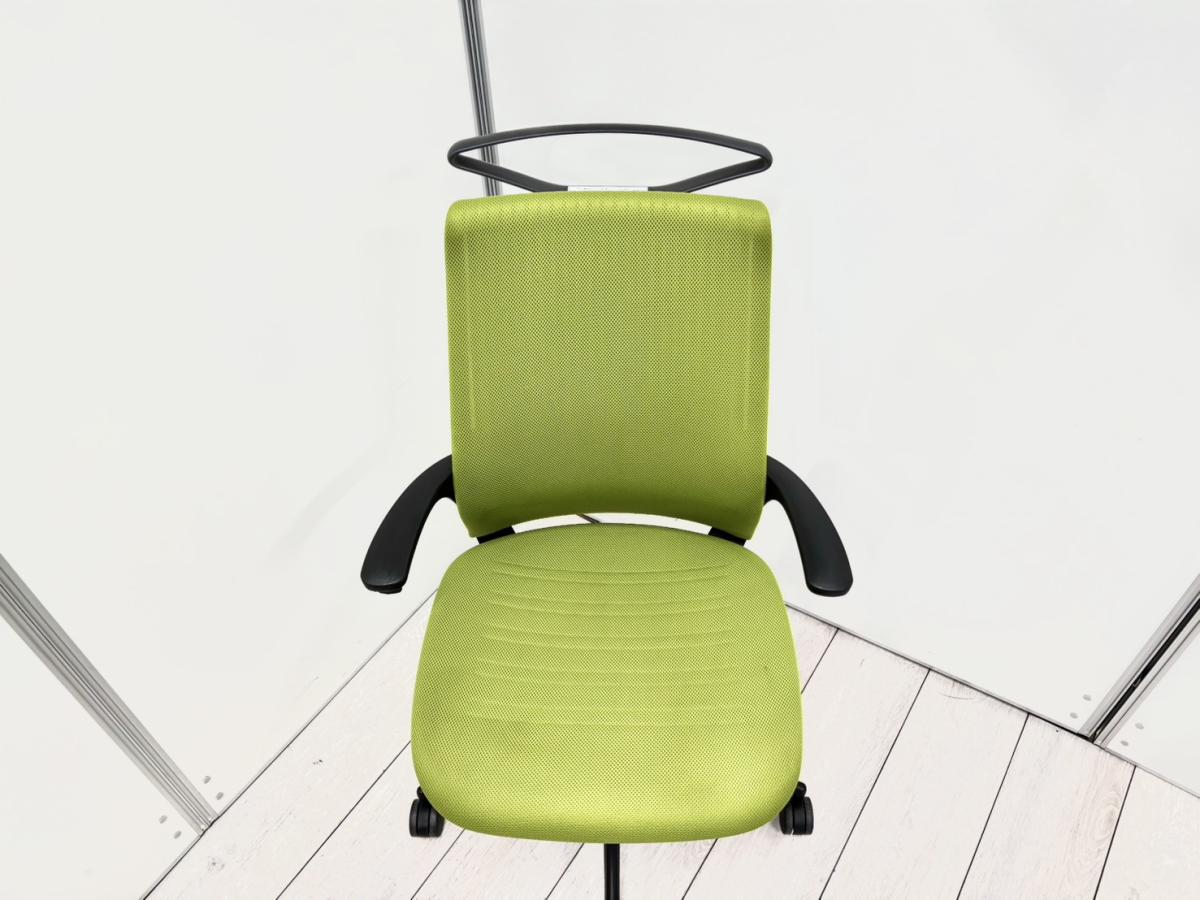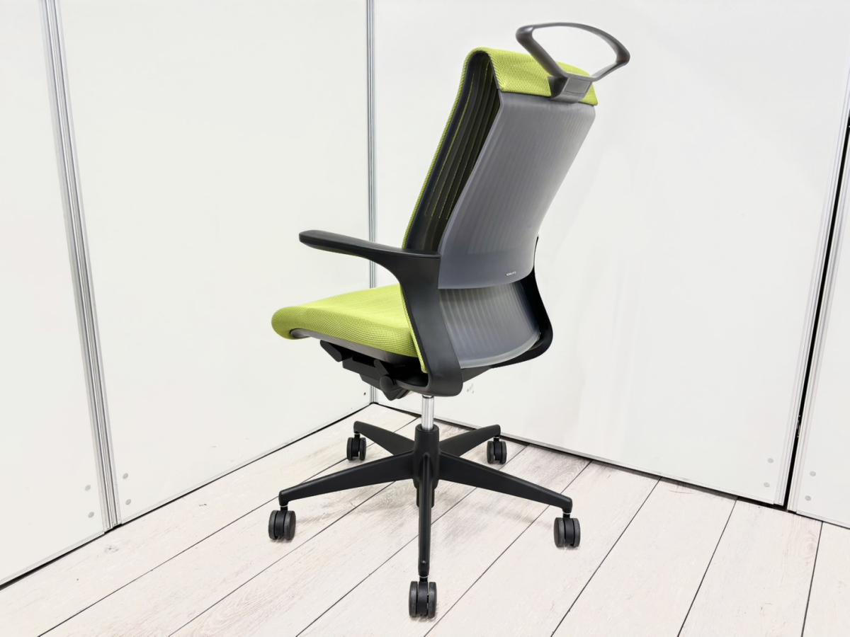 【手元でラクラク上下操作できます!】■コクヨ(KOKUYO)製 M4(エムフォー)チェア 肘付き ハイバック ■固定肘 ■リーフグリーン