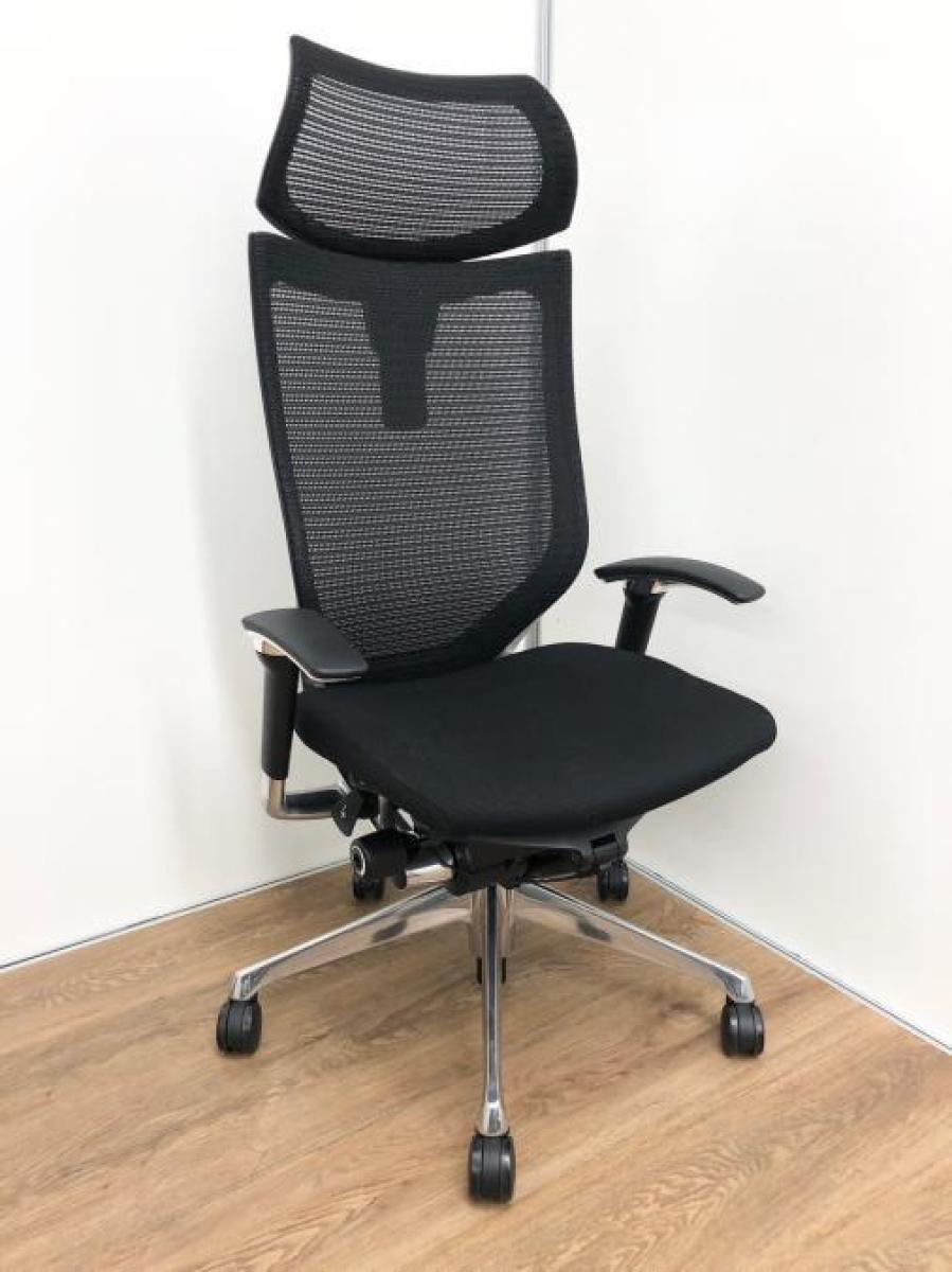 【オフィスの執務室、会議室におすすめ!】■オカムラ(okamura)製 バロン(Baron)チェア 肘付き ハイバック ■背面メッシュ ■座面クッション ■可動肘 ■ヘッドレスト付き ■ブラック【硬めの座面が大人気!国産メッシュチェアの代表格!】【TH】- 春日部・越谷店