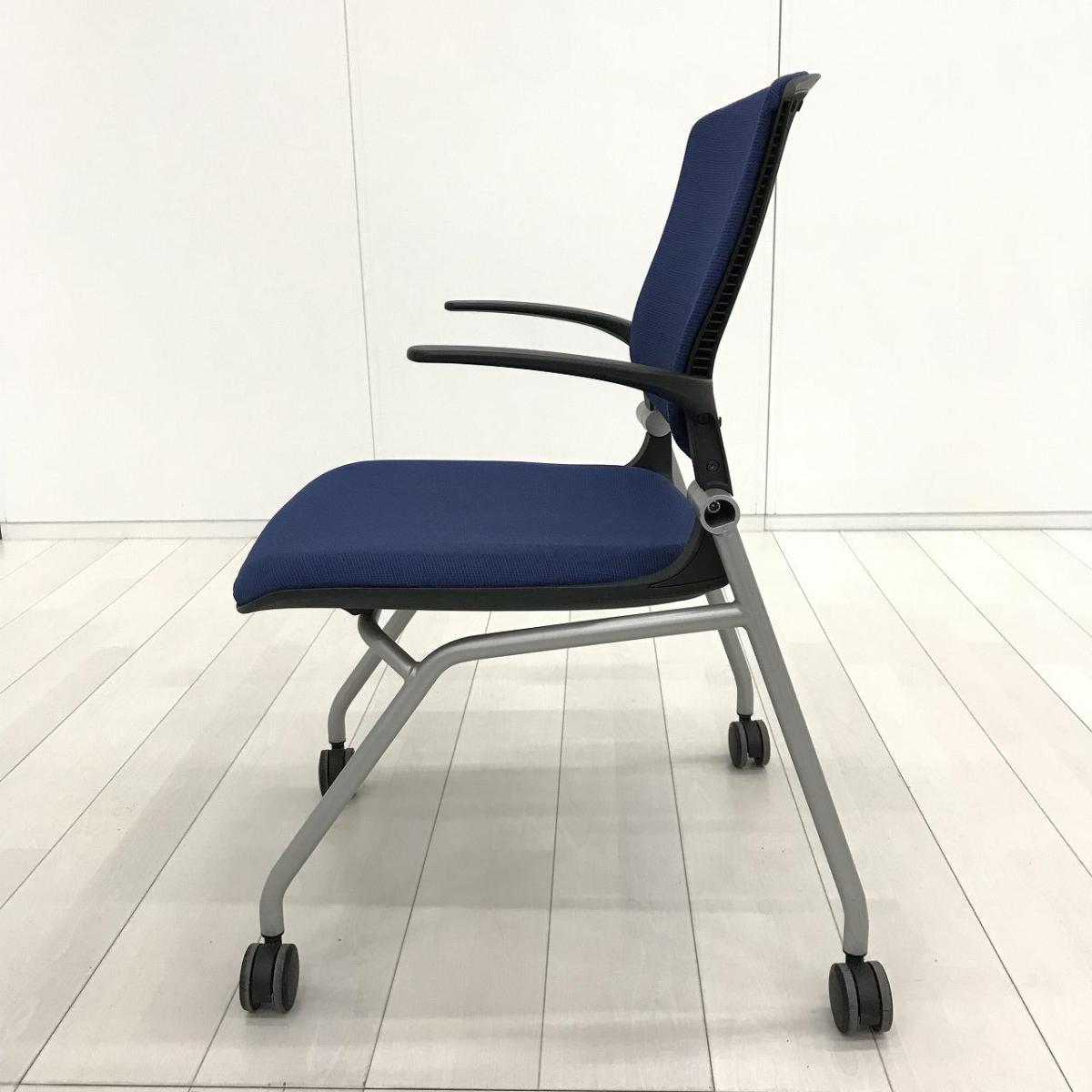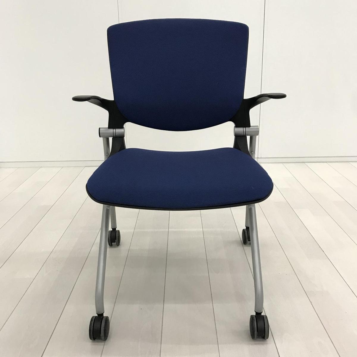 【ロッドで入荷!オカムラ製の人気会議用チェアが揃います!】オカムラ グラータ ブルー×グレー 肘無 折りたたみ 会議 ミーティング 来客 中古家具 九州最大級《オフィスバスターズ福岡博多店は、福岡を拠点として、日本全国へ中古オフィス用品・オフィス家具を提供しております》