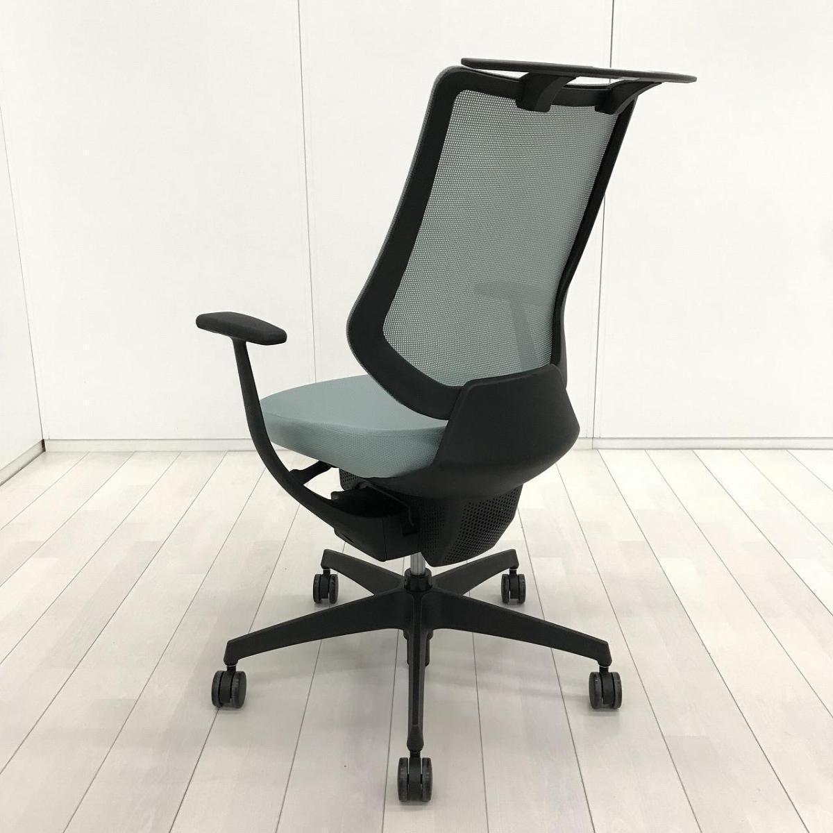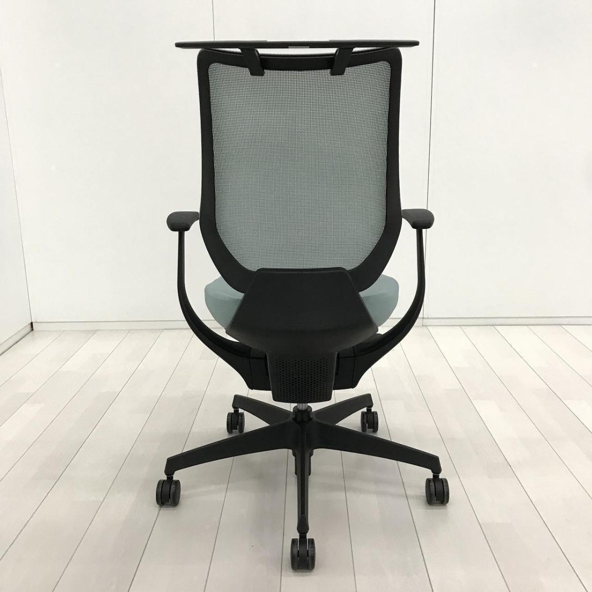 話題のチェア/在宅勤務/希少 コクヨ(KOKUYO)製 イング(ing)チェア 肘付ハイバック バーチカルタイプ ■背メッシュ・座面クッション ■アッシュターコイズ 樹脂脚