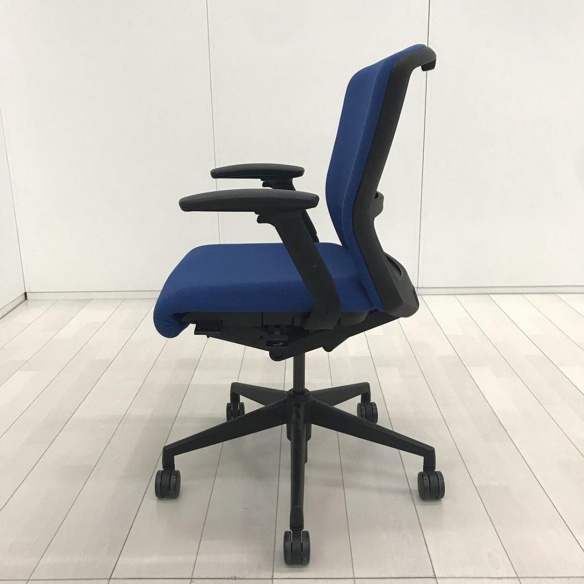【ワンランク上の座り心地!】■内田洋行(UCHIDA)製 エルフィ(Elfie)チェア 肘付 ミドルバック ■可動肘 ■ブルー- 茨城南店