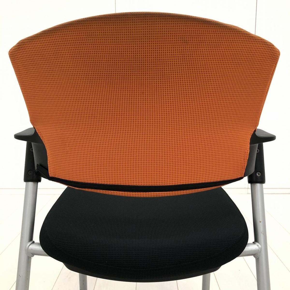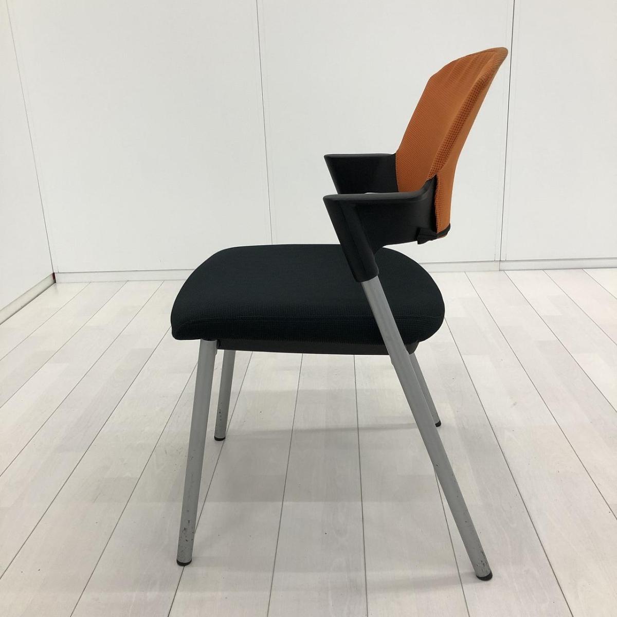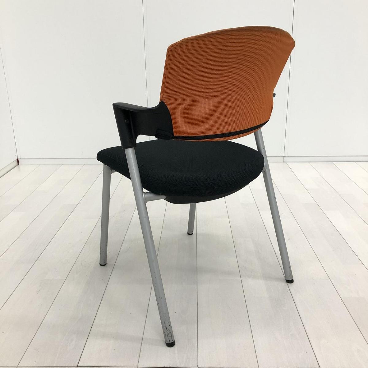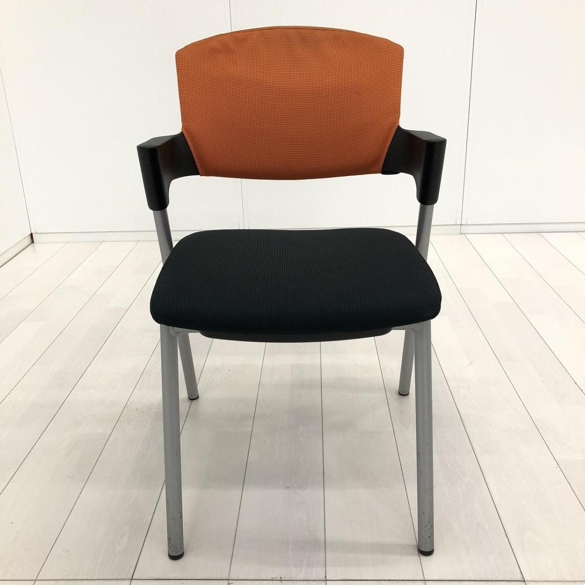 【シンプルスマートなスタッキングチェア!分厚いクッションで長時間でも快適な座り心地!】■コクヨ(KOKUYO)製 プロッティ(Protty)シリーズ 肘付スタッキングチェア ■固定肘 ■背面:タンジェリン ×座面:ブラック オフィスバスターズ 梅田本店- 大阪梅田本店