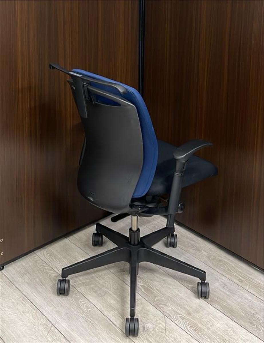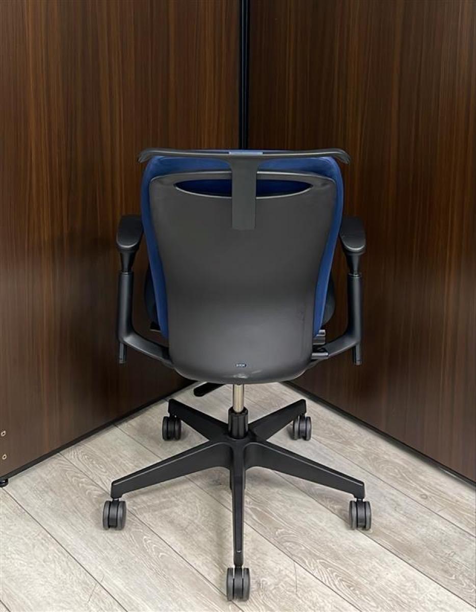 【定価約8万円】【座る人を選ばない、シンプルスタイルな定番シリーズ!把手付きで汚れ対策&持ち運びラクラク!】 ■イトーキ(ITOKI)製 フルゴチェア 肘付ローバック ■固定肘 ■背面:ネイビーブルー/座面:ブラック