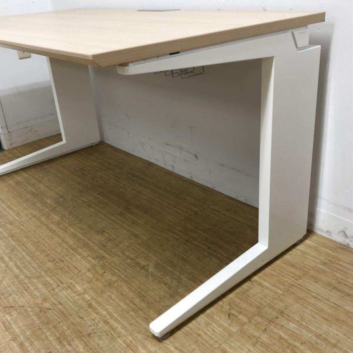 ナチュラルな木目天板とホワイト脚の組み合わせは、オフィス空間を明るく清潔感のある印象に演出します。