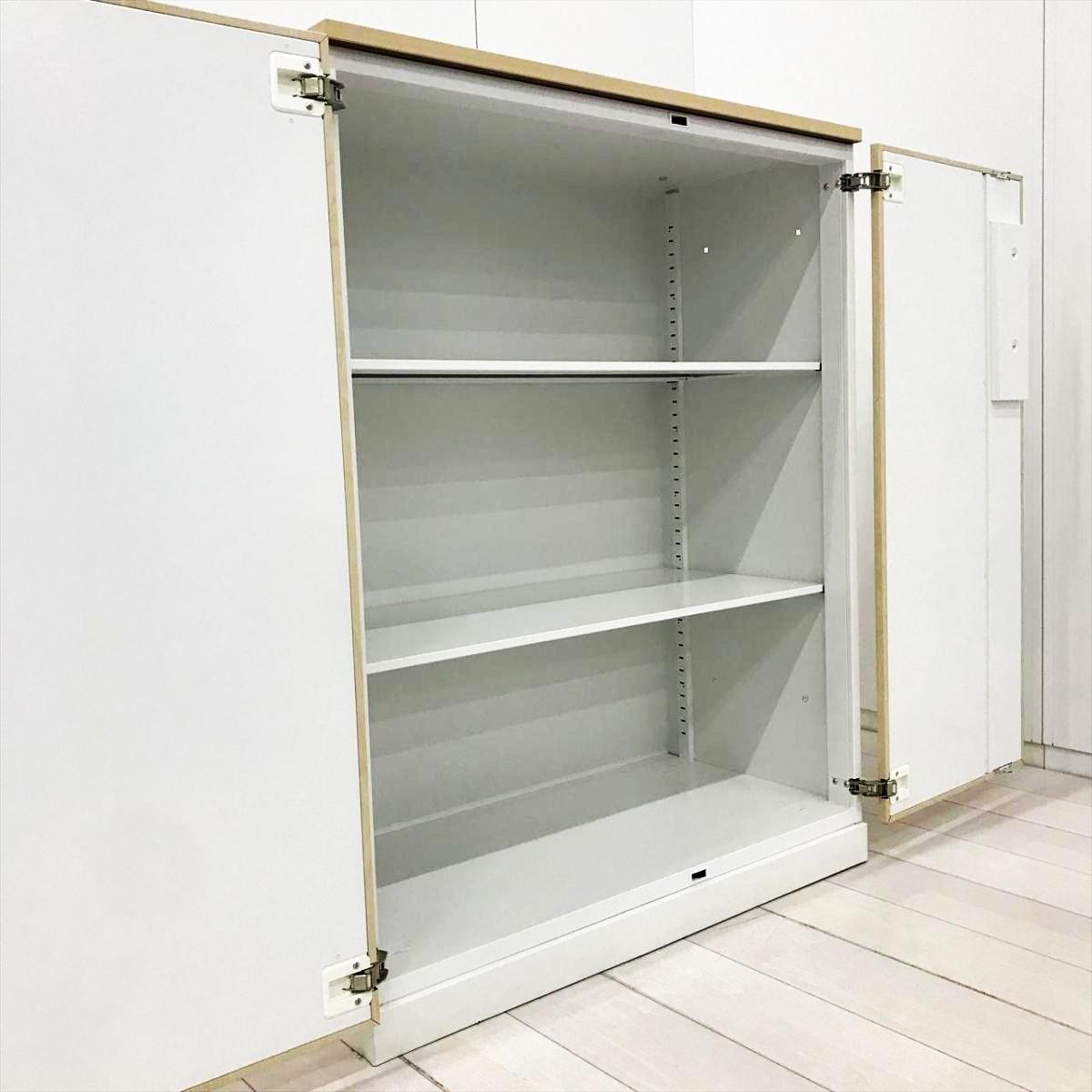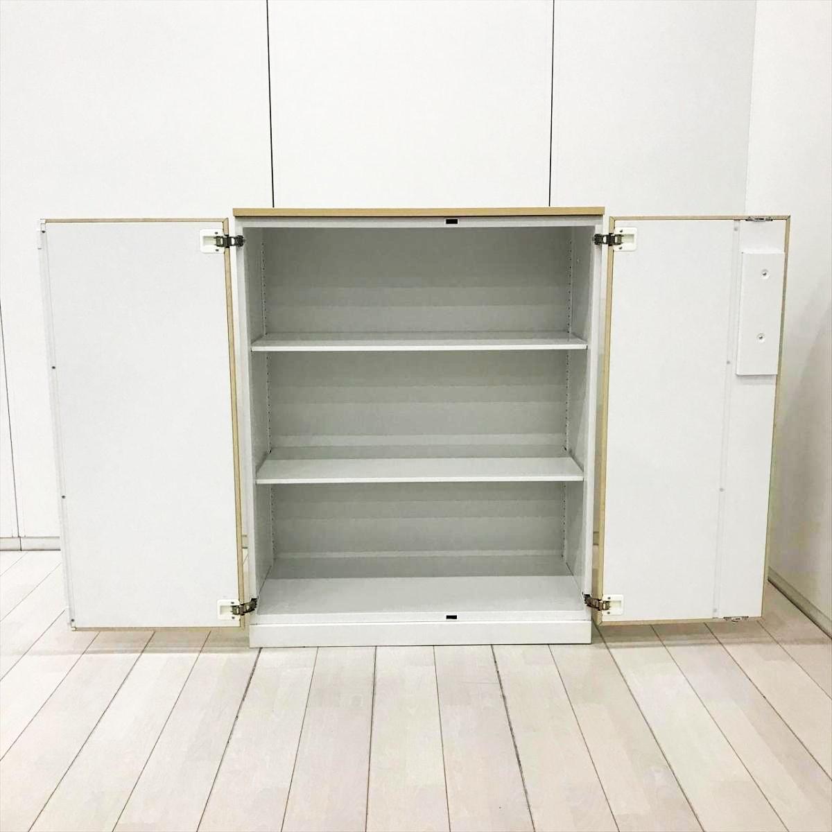 【586029】【収納物がひとめで分かる両開き戸タイプ!】■コクヨ(KOKUYO)製 エディア(EDIA)木目シリーズ 両開き書庫 ローキャビネット ■天板・ベース付 ■シリンダー錠 ■本体:ホワイト/扉:ナチュラルオーク オフィスバスターズ 水戸サテライト 大子町 北茨城市 高萩市 日立市 常陸太田市 常陸大宮市 那珂市 東海村 ひたちなか市 城里町 水戸市 笠間市 茨城町 大洗町 小美玉市- 水戸サテライト