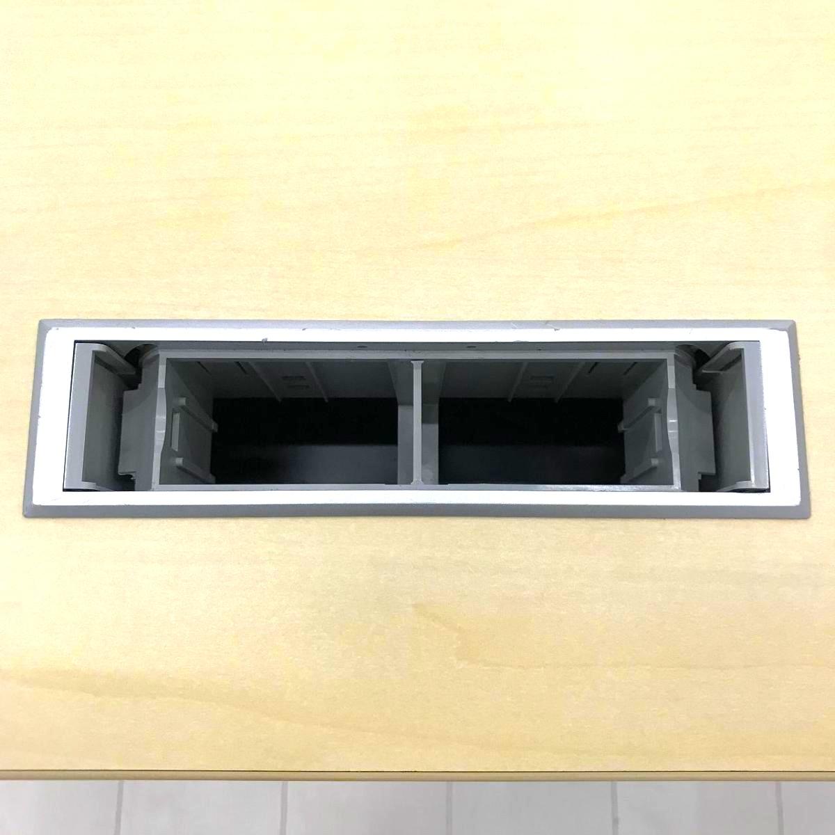 天板には 配線口を標準装備 しており、PC・モニター・電源コードなどをすっきり収納可能。
