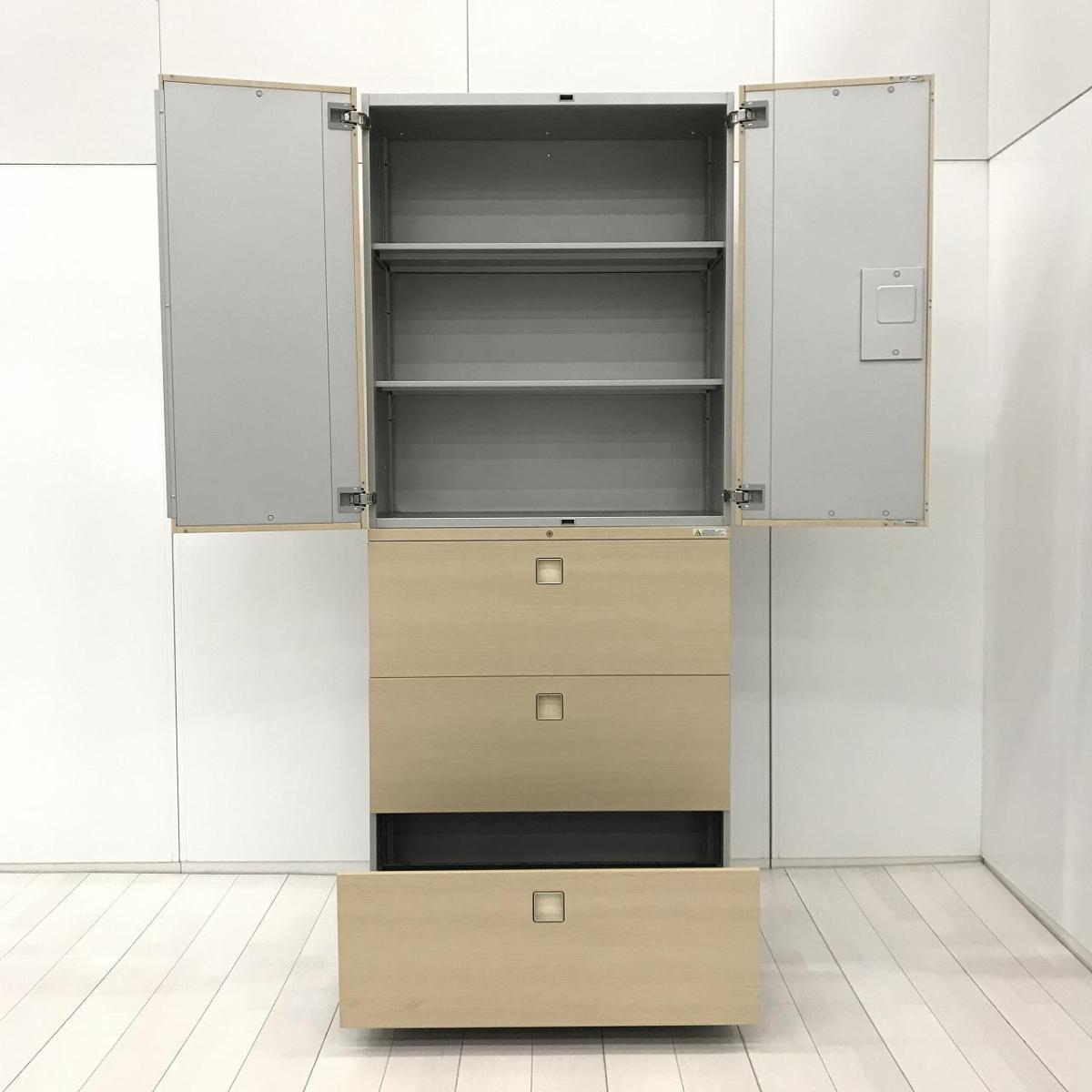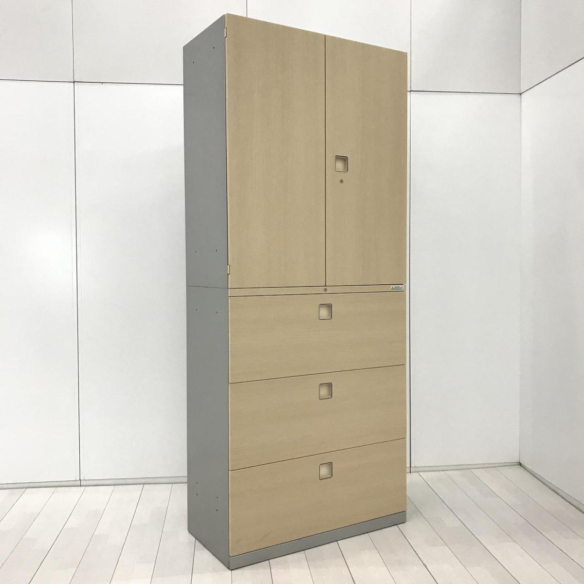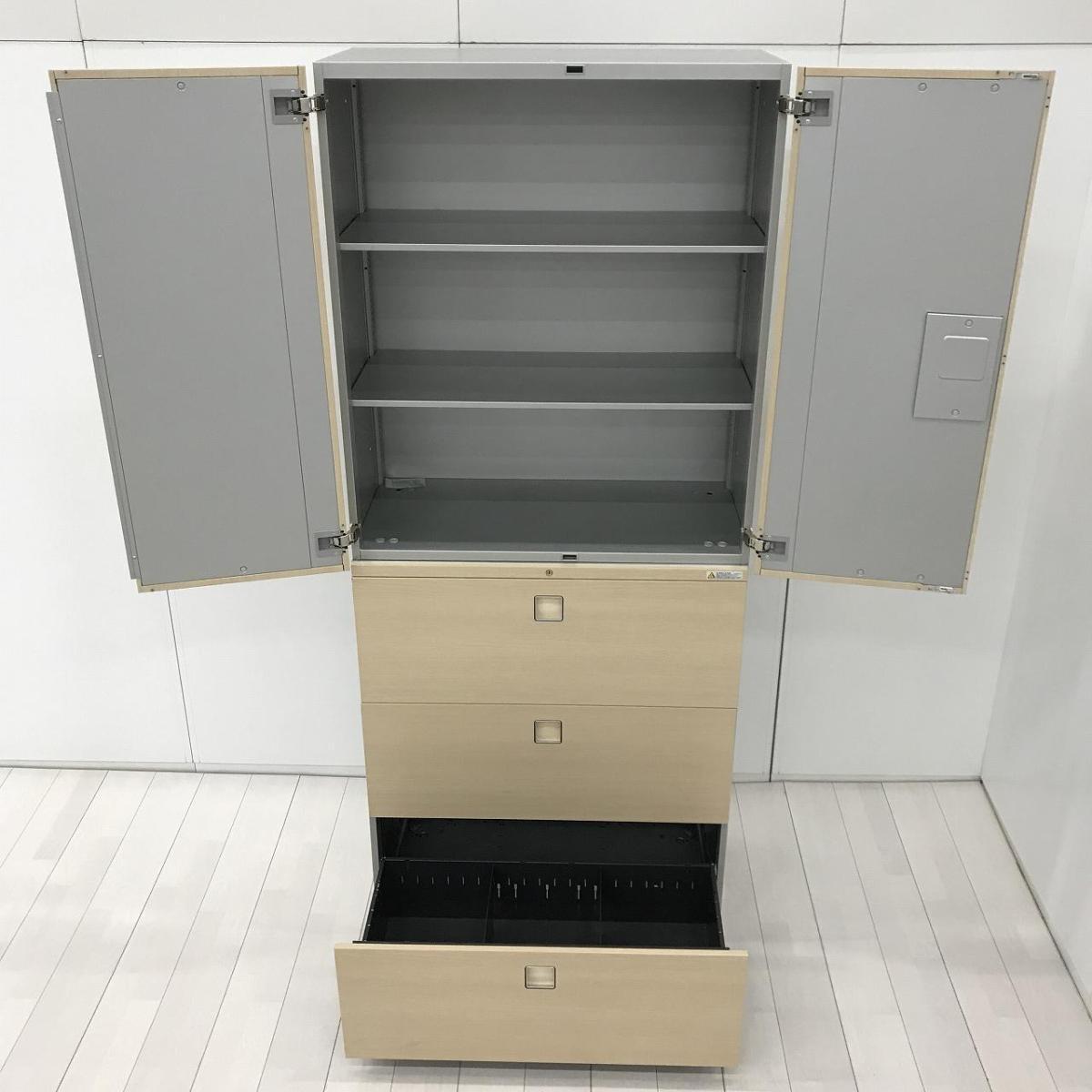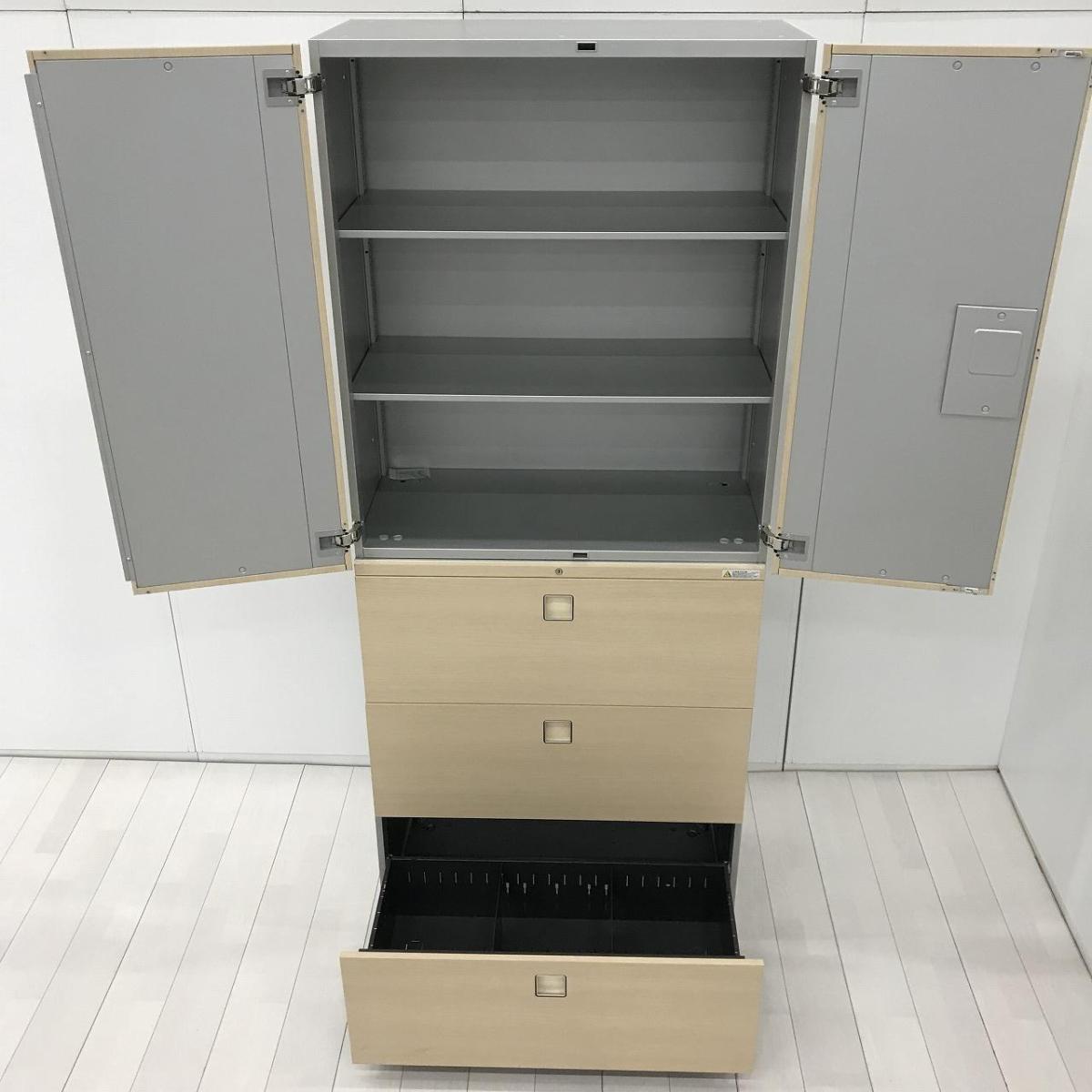 【中古】 レクトライン 4B313F ZB41 オカムラ/okamura ハイキャビネット/両開き+3段ラテラル 586397