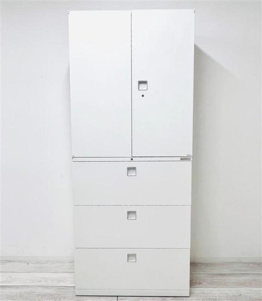 【定価約19万円】【書類の収納力抜群の上下書庫セット入荷!】■オカムラ/レクトライン ■下段ラテラル+上段両開き ■ホワイト在庫がある店舗一覧