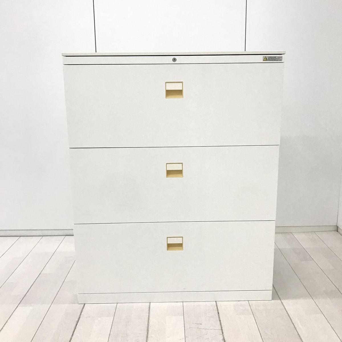 【大きく開いて収納物が見やすく、収納力も抜群!どの空間でも使いやすいホワイトカラー!】■オカムラ(okamura)製 SAデュオラインシリーズ 3段ラテラル ローキャビネット W900×D450㎜ ■天板付 ■シリンダー錠 ■ホワイト ※取っ手部分日焼けあり在庫がある店舗一覧