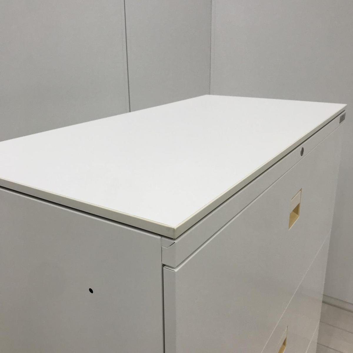 【在庫入替セール】【3台限定】【大きく開いて収納物が見やすく、収納力も抜群!どの空間でも使いやすいホワイトカラー!】■オカムラ(okamura)製 SAデュオラインシリーズ 3段ラテラル ローキャビネット W900×D450㎜ ■シリンダー錠 ■ホワイト ■天板付【K4】