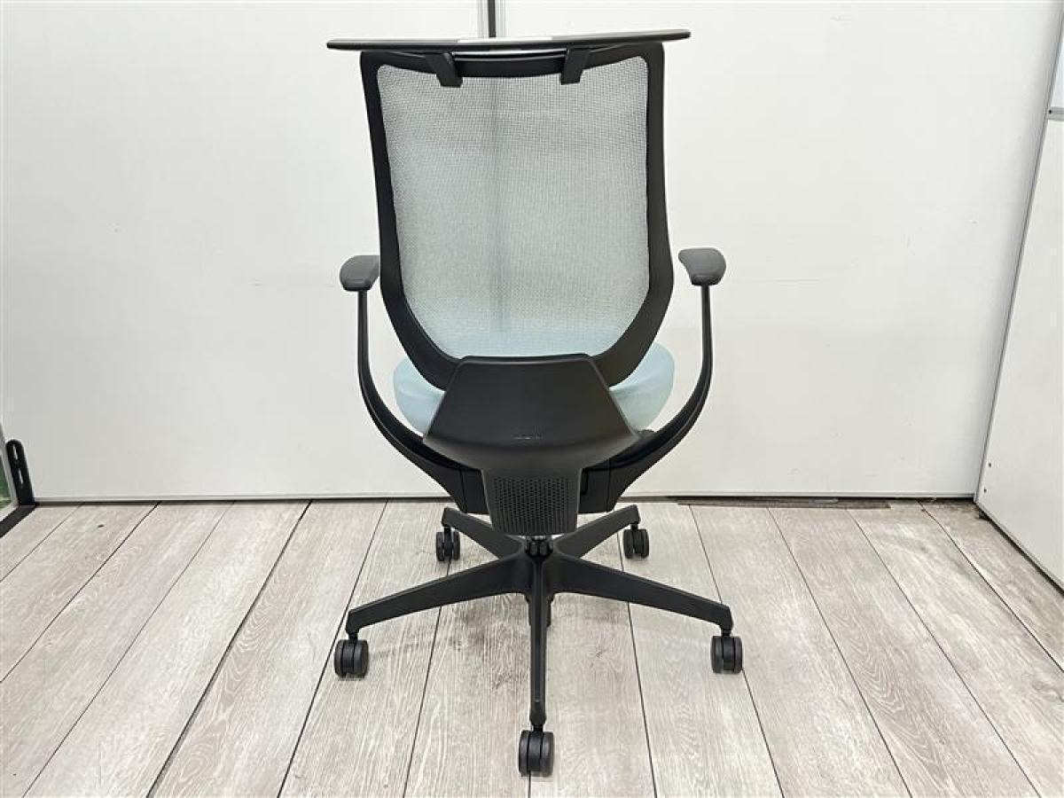 話題のチェア/在宅勤務/希少 コクヨ(KOKUYO)製 イング(ing)チェア 肘付ハイバック バーチカルタイプ ■背メッシュ・座面クッション ■アッシュターコイズ 樹脂脚