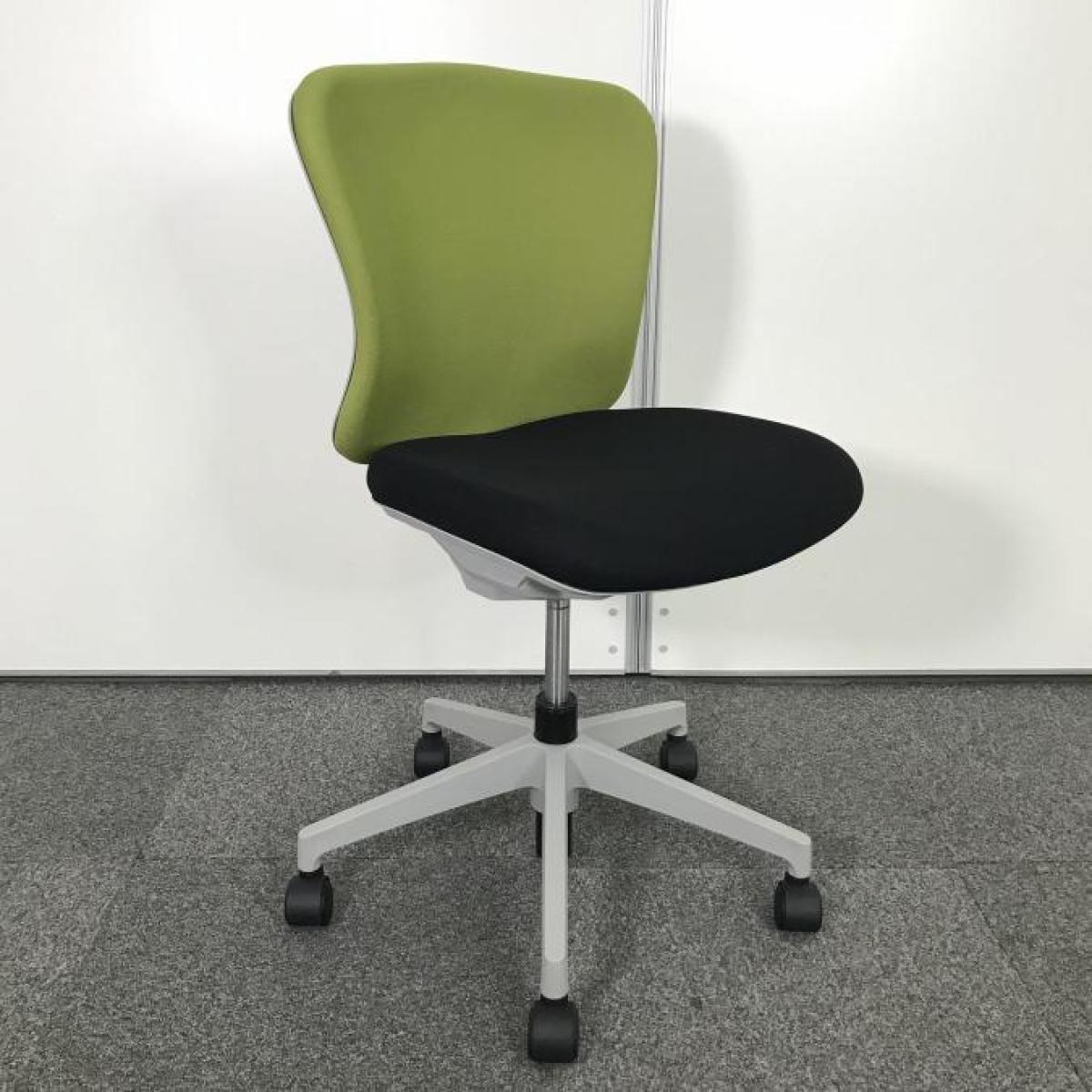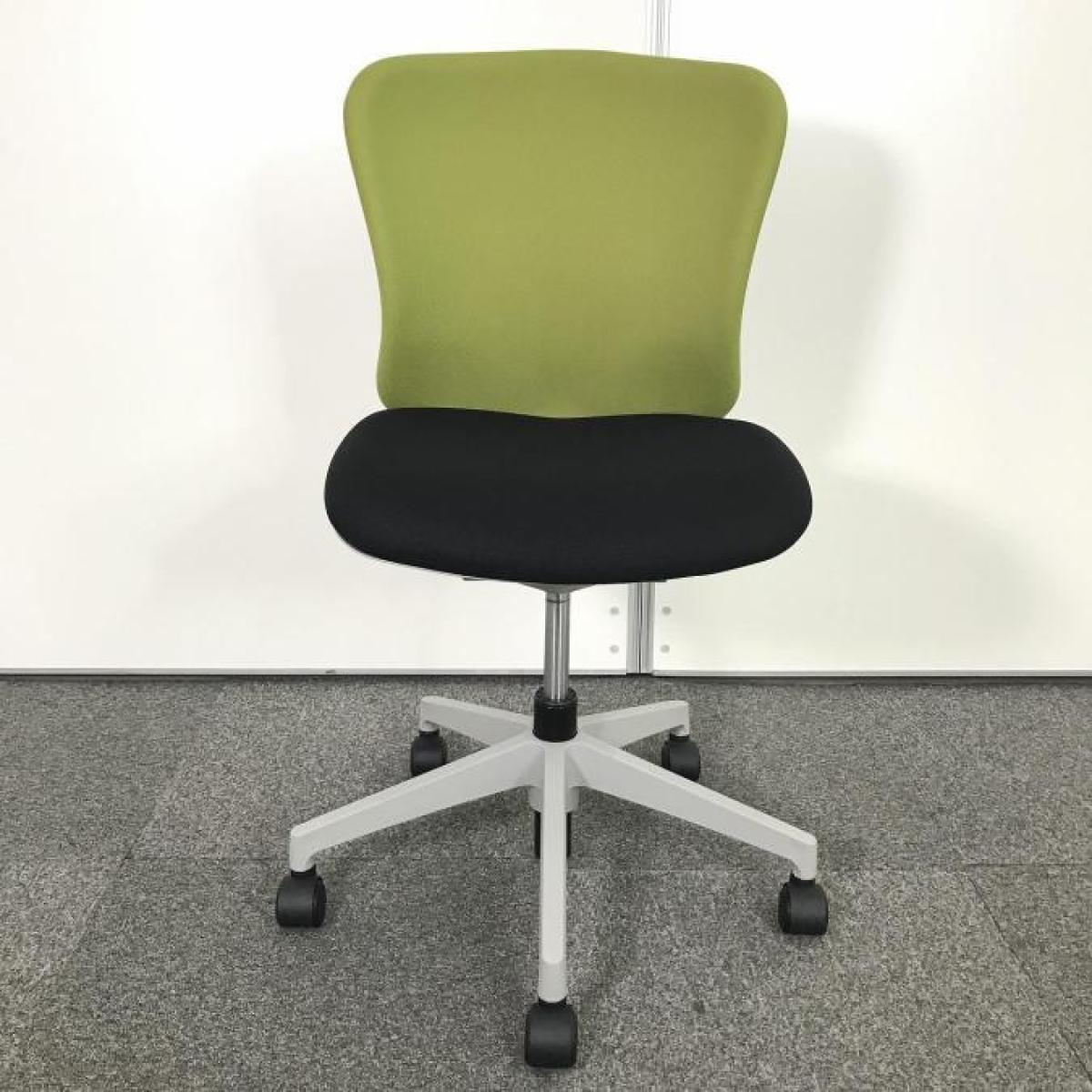 【ローコストチェアの定番!使いやすいスタンダードなデザイン1】■イナバ(INABA)製 バルチェシリーズ 肘無 ローバックチェア ■背面グリーン×座面ブラック- つくば店