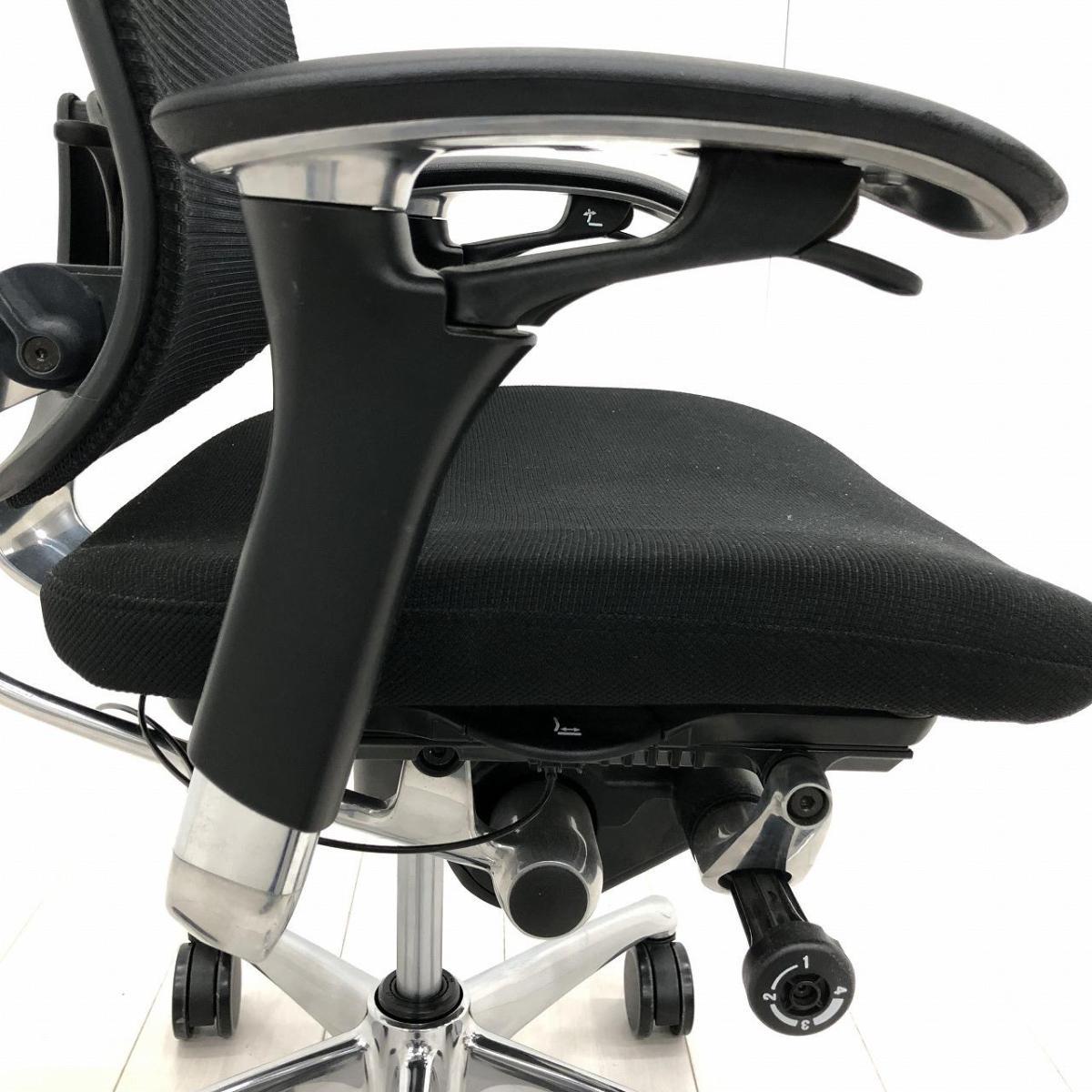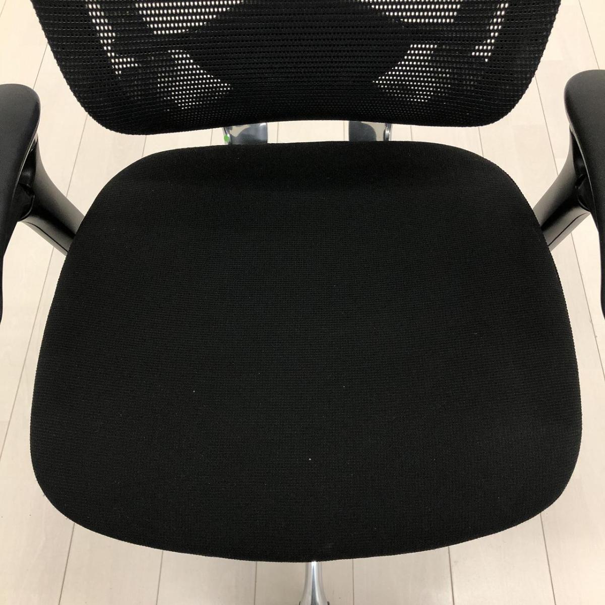【世界で認められた革新的タスクチェア!人間工学に基づいた快適な座り心地を実現!】■オカムラ(okamura)製 コンテッサ(Contessa)チェア 肘付 ハイバック 背面メッシュ ■可動肘・ランバーサポート付き ■ブラック ※肘スレ有