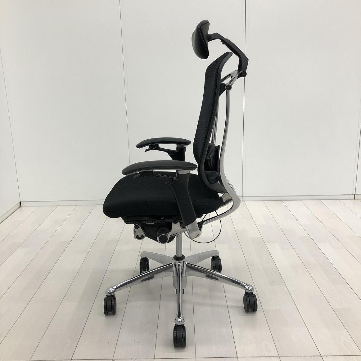 【上質なデザイン!高機能で快適な座り心地で快適キープ!】■オカムラ コンテッサチェア 可動肘付 ブラック ヘッドレスト付 ■ハイクラス!高級チェアでオフィスに至福のひと時を!【Okamura Contessa】