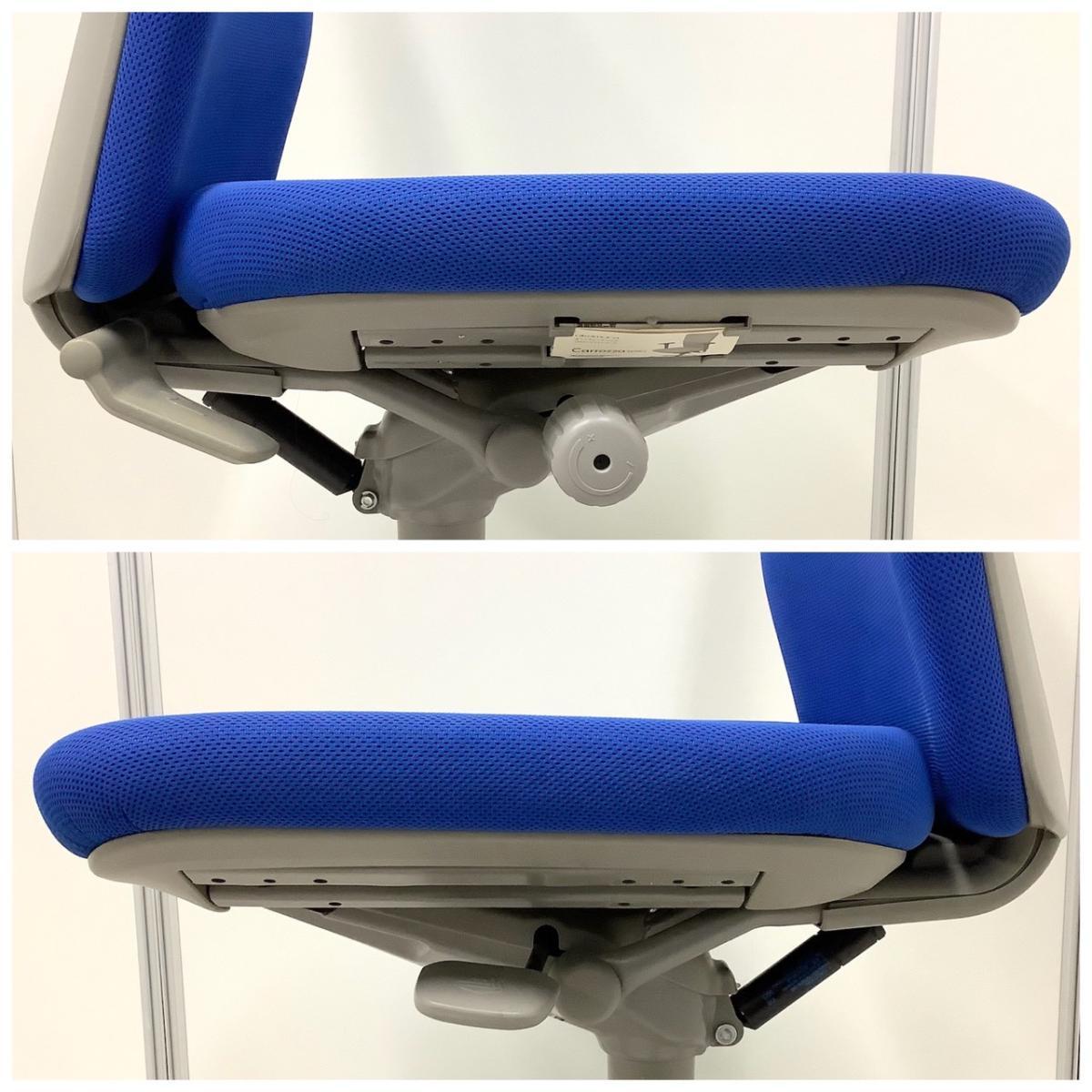 オカムラ製 カロッツァ ブルー グレーフレーム ハイバック 肘無し オフィスの王道チェアが入荷! 分厚いクッションとシンプルで使いやすい操作性! 肘無しハイバックチェア!!