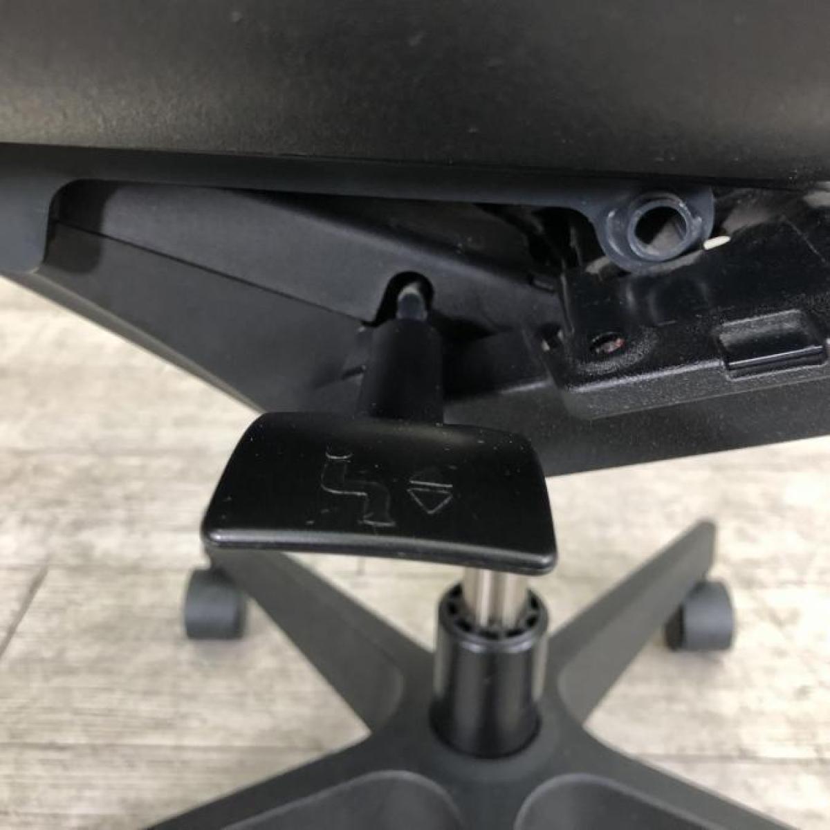 例えば、座面は、イトーキ独自の"ベンディングシート"という機構により、クッション、インターシェル、空洞という三層構造になっています。 この真ん中に挟まっているインナーシェルが、着座時の姿勢に合わせて体重を分散してくれるので、どんな姿勢でも体になじみ、疲労を軽減してくれます。 さらに、座面は前後に4センチほど奥行きを調整でき、前傾姿勢で座りたい、深く腰掛けたい、膝裏を圧迫されたくないなど、個人の好みに合った快適さにカスタマイズが可能となっています。