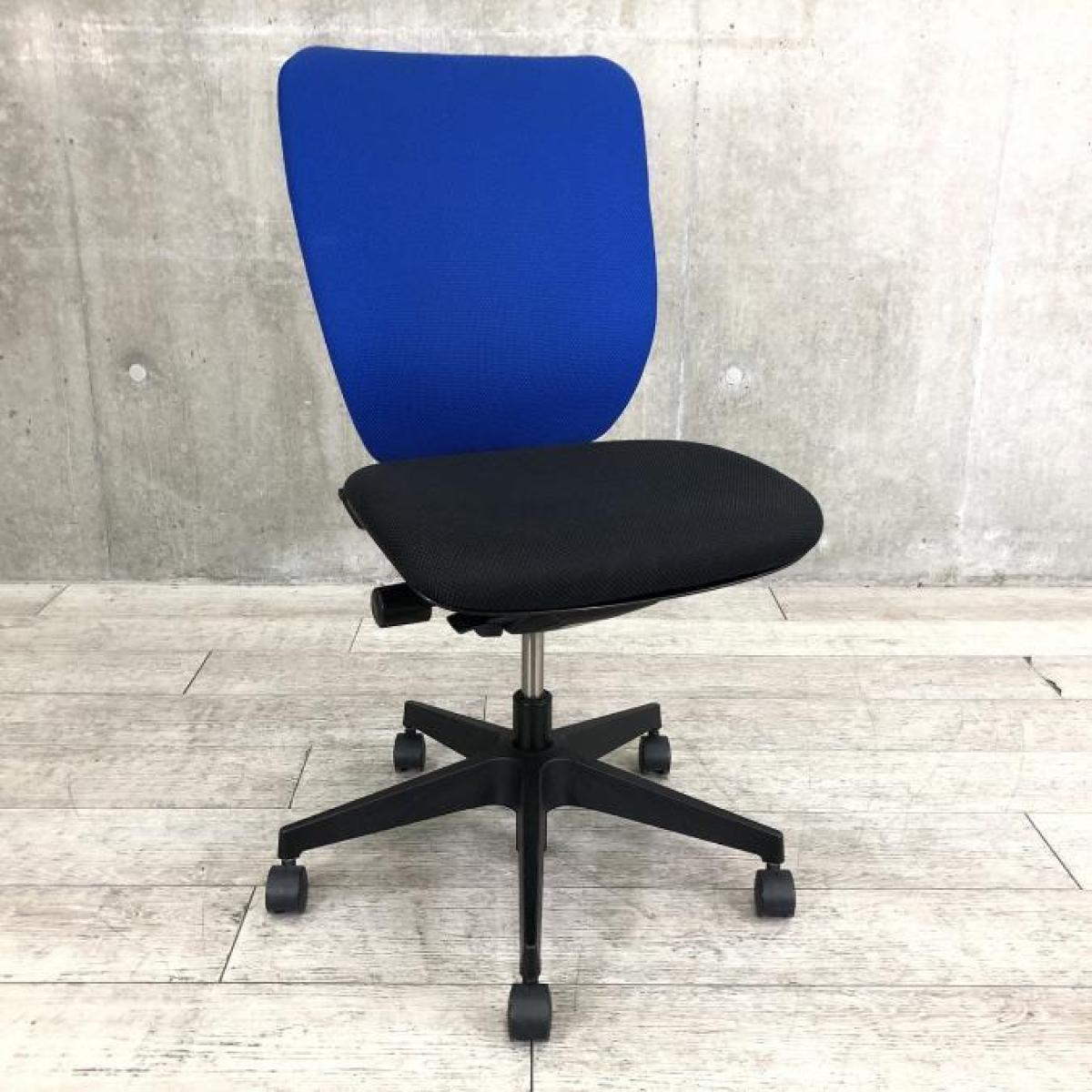 【腰にフィットするランバーサポート!身体にやさしい!】■イトーキ(ITOKI)製 プラオ(Prao)チェア 肘無しハイバック ■ストロングブルー×ブラック