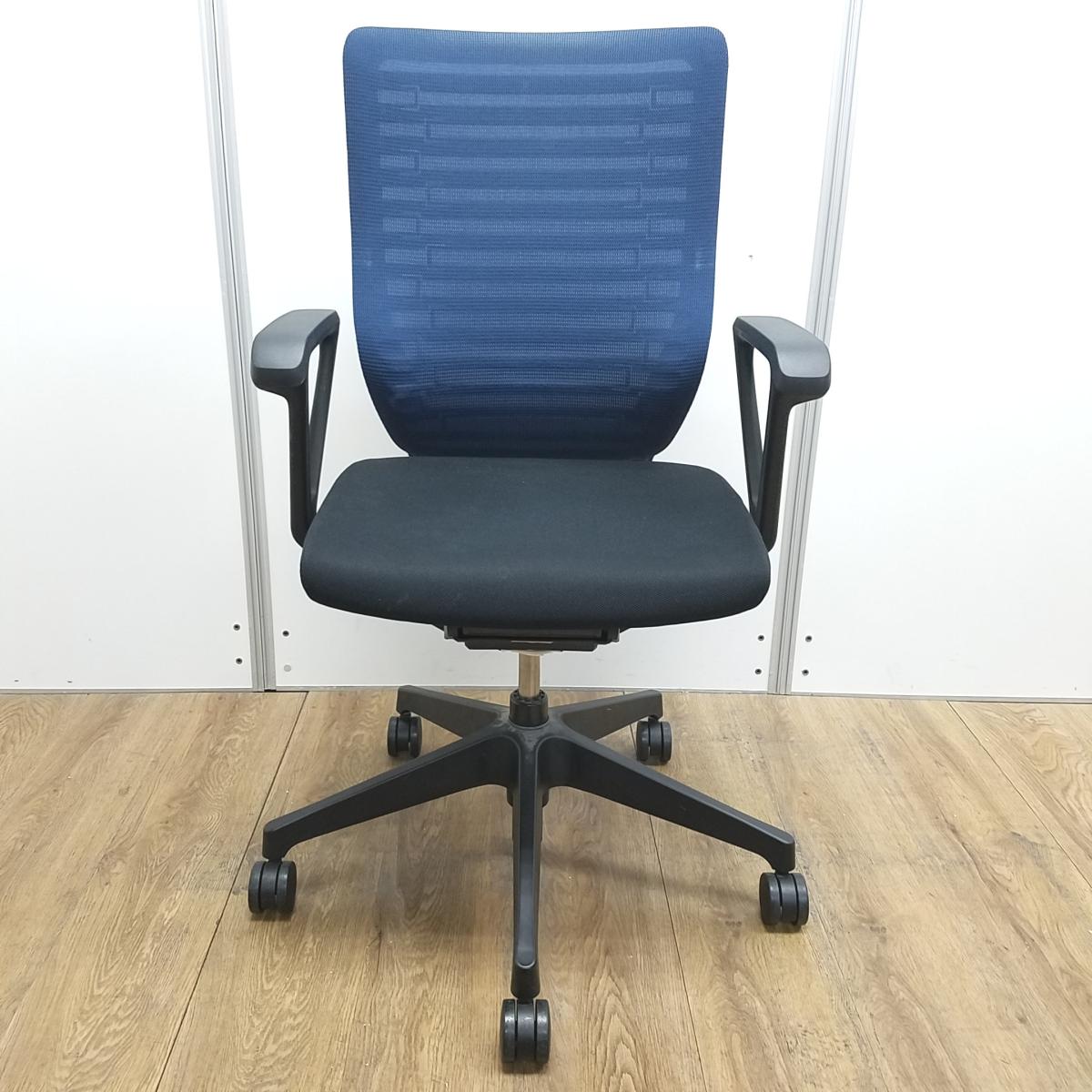 イトーキ製 エピオス ネイビーブルー 肘付き ハイバック 背面メッシュ サークル肘※固定肘 操作レスな体重感応メカを搭載! 体格にマッチするエピオスチェア! 肘付きハイバックチェア!!サーキュラーバリューCO2削減量の算出について