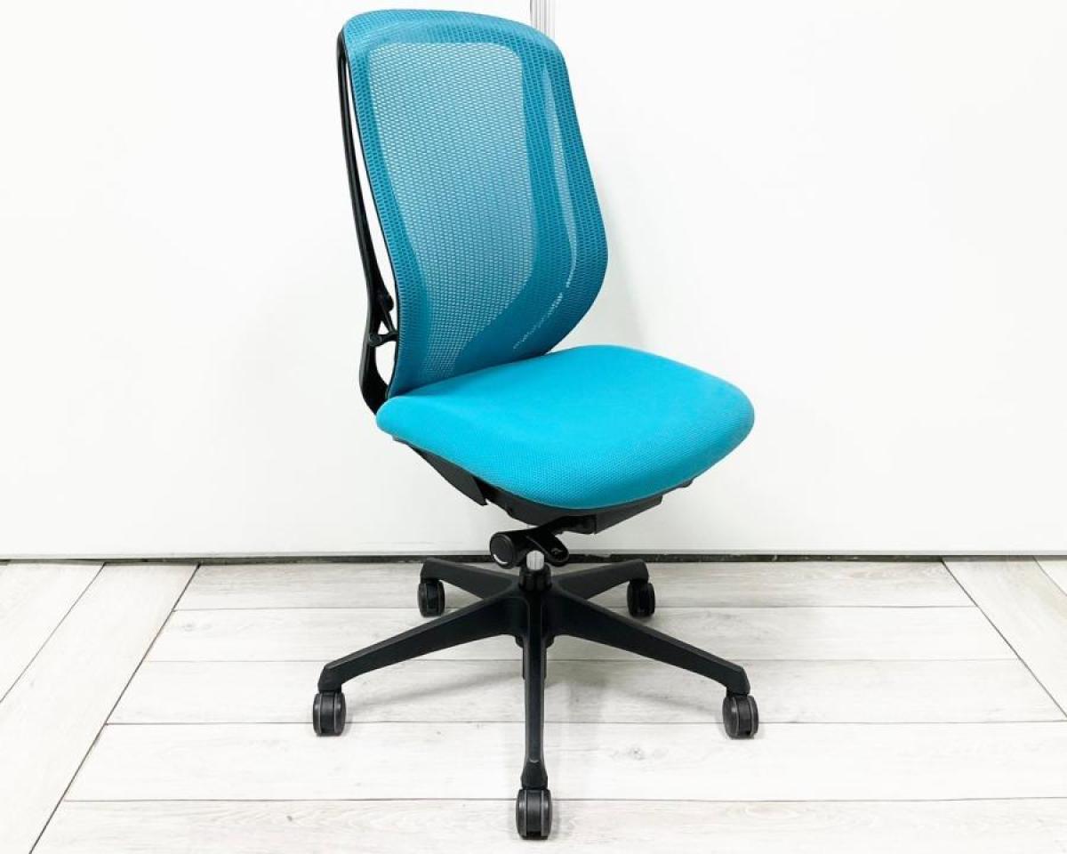 オカムラ シルフィー ハイバック 肘無しチェア ミディアムブルー×ホワイトフレーム 前傾機能付きの人気シリーズ 在宅ワークにも最適【愛知・名古屋・豊田・静岡・浜松】