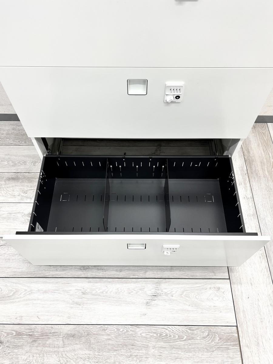 上段は出し入れのしやすい両開きタイプ、下段は書類を効率よく整理できる3段ラテラルタイプとなっています。