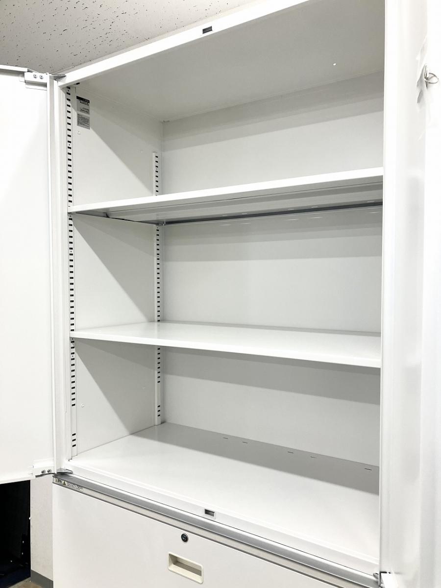 【人気商品の上下書庫セット!これ1台で書類整理の問題が解決!上下で6段分の大容量収納!】■イトーキ(ITOKI)製 シンライン 書庫セット(両開き+3段ラテラル) ■シリンダー錠 ■ホワイト
