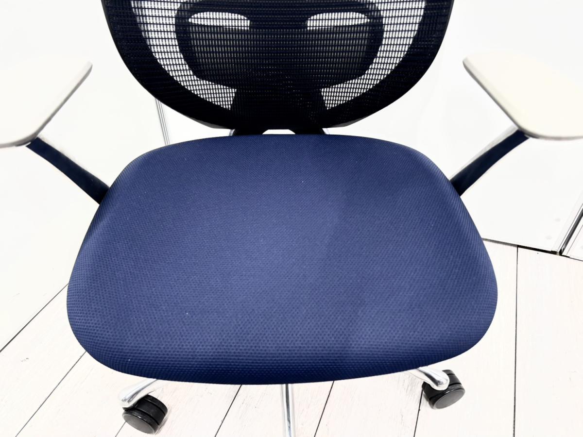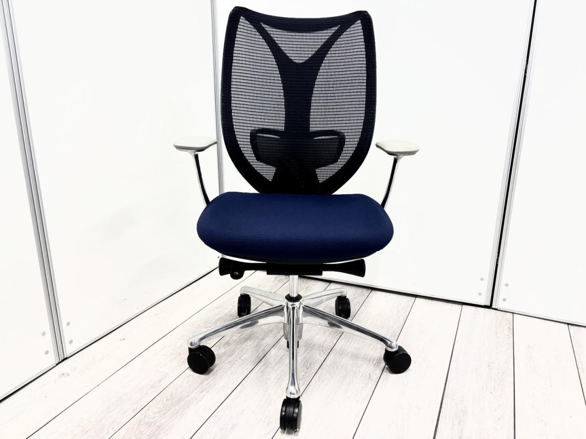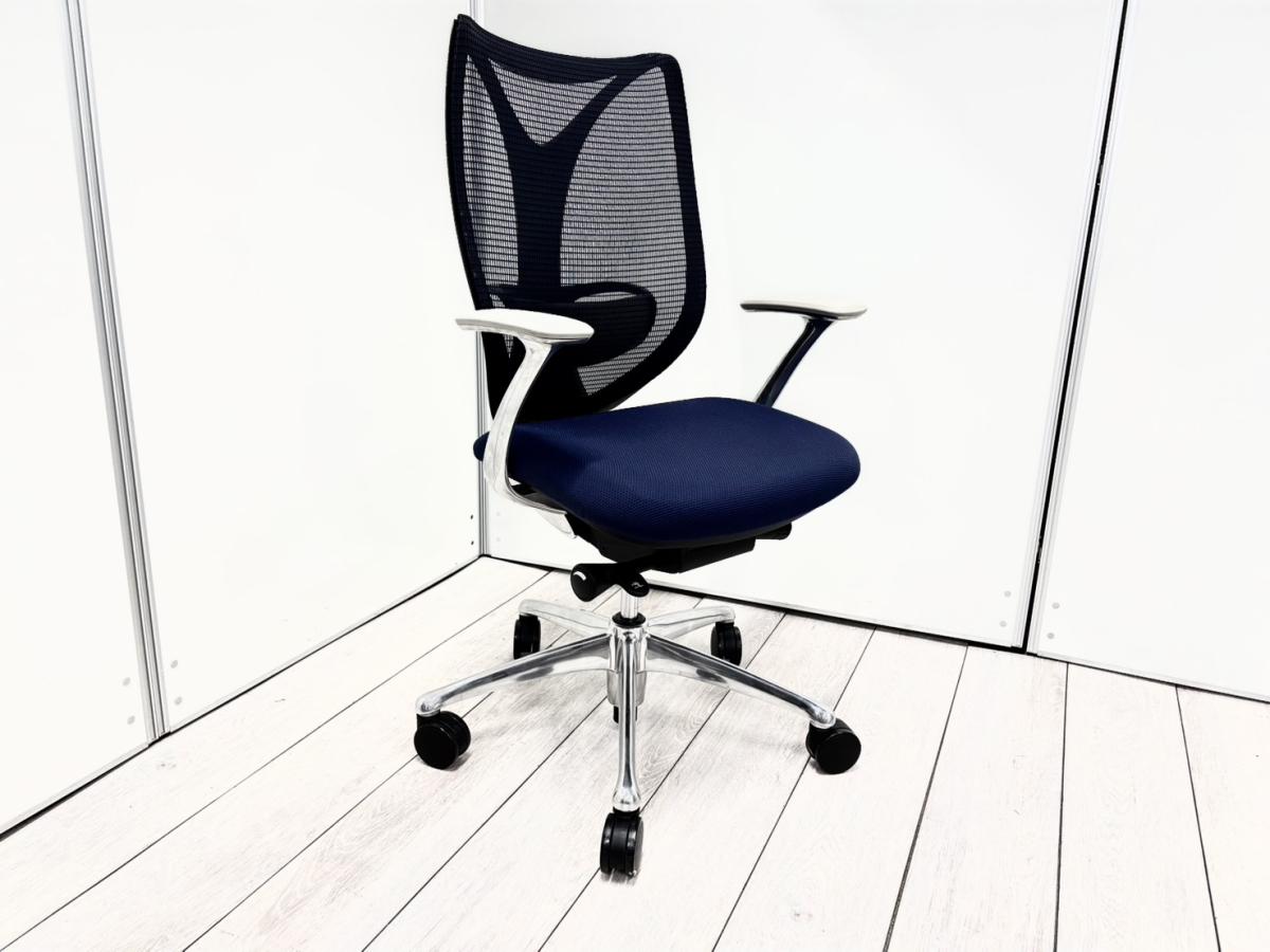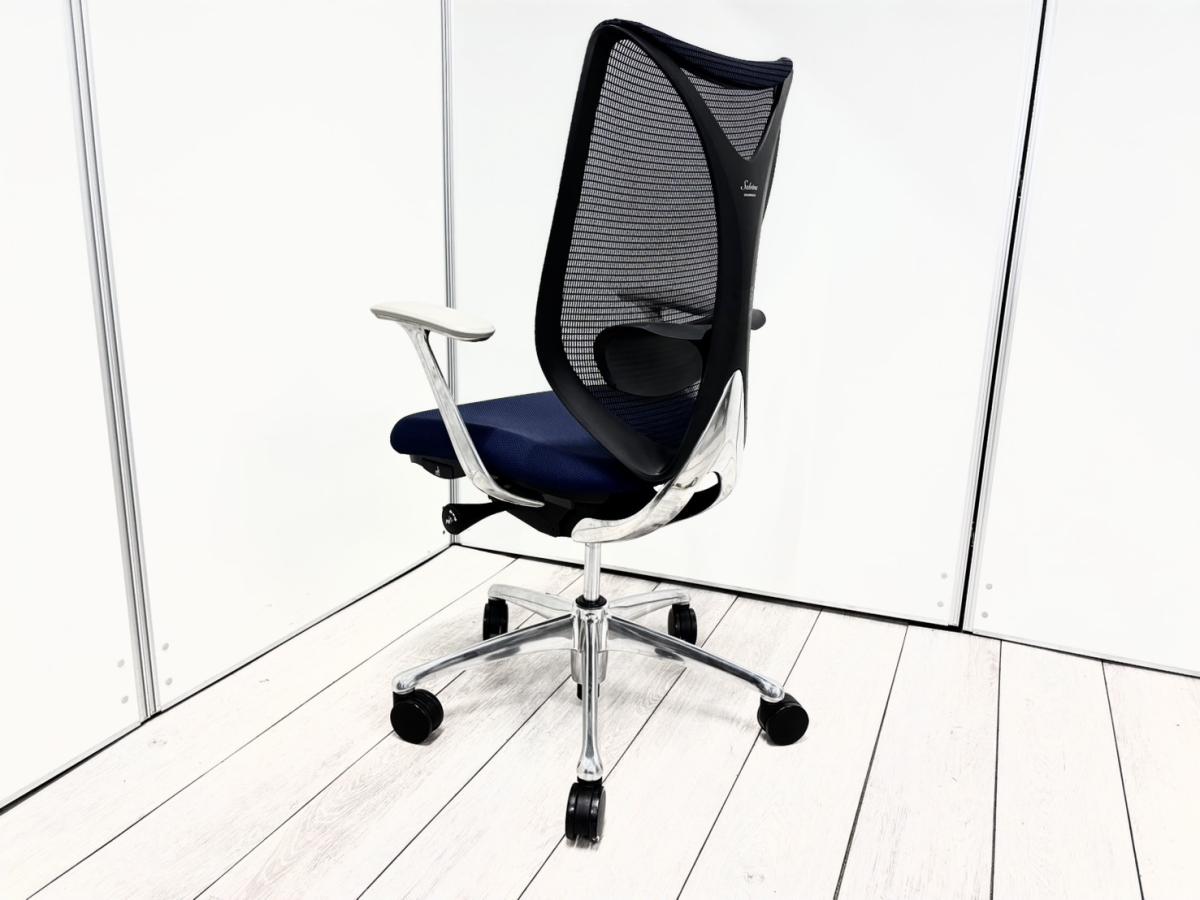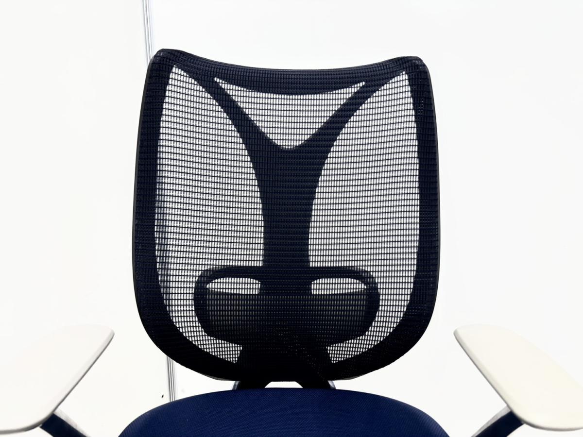 大人気!オカムラ製のメッシュチェアが入荷! 座面・背面が広めでしっかりしており、前傾機能が付いた高級チェアです! ■オカムラ/サブリナ/ダークブルー×ブラックフレーム ホワイトデザインアーム付サーキュラーバリューCO2削減量の算出について