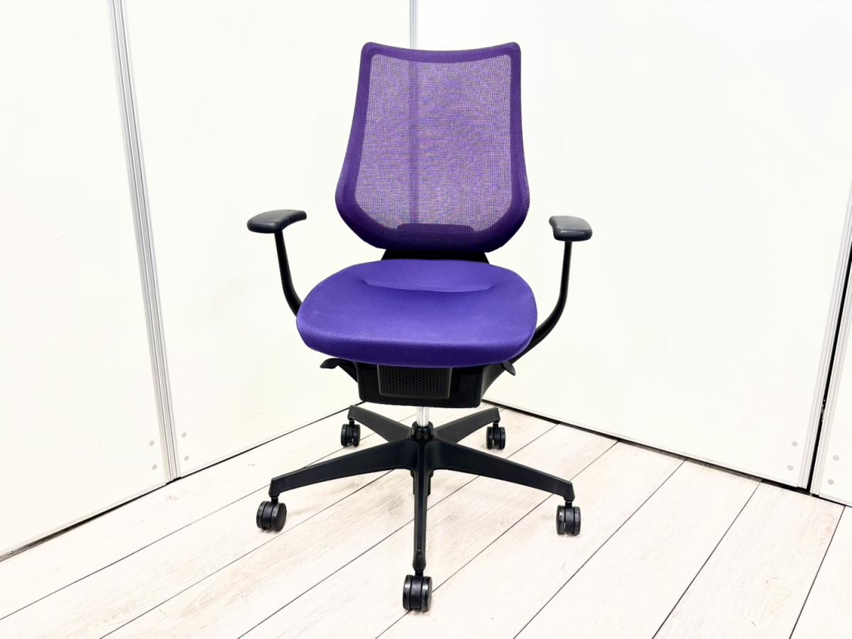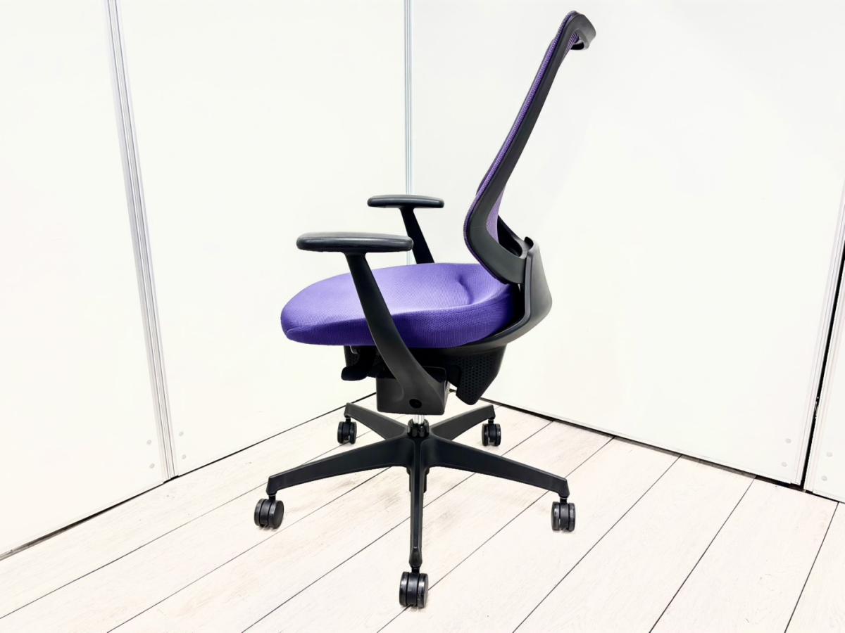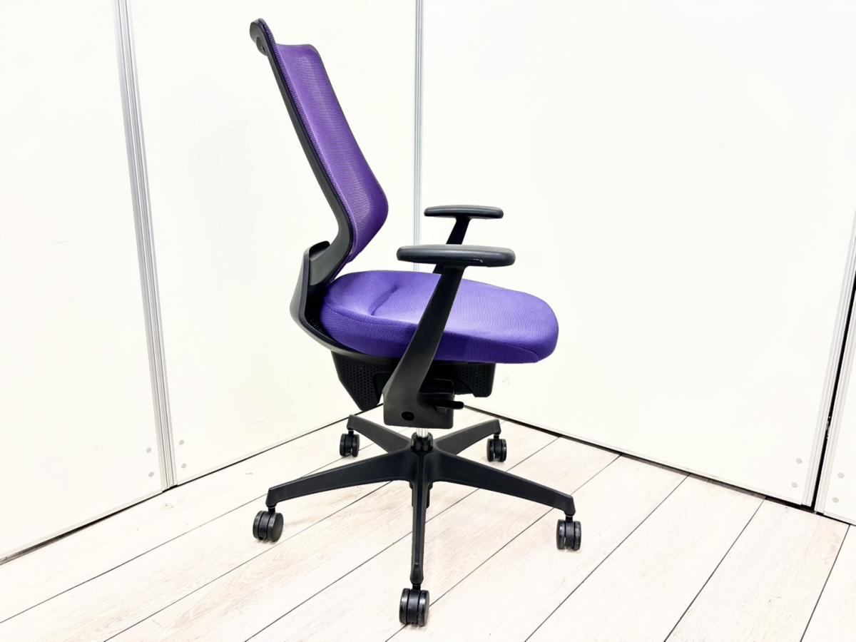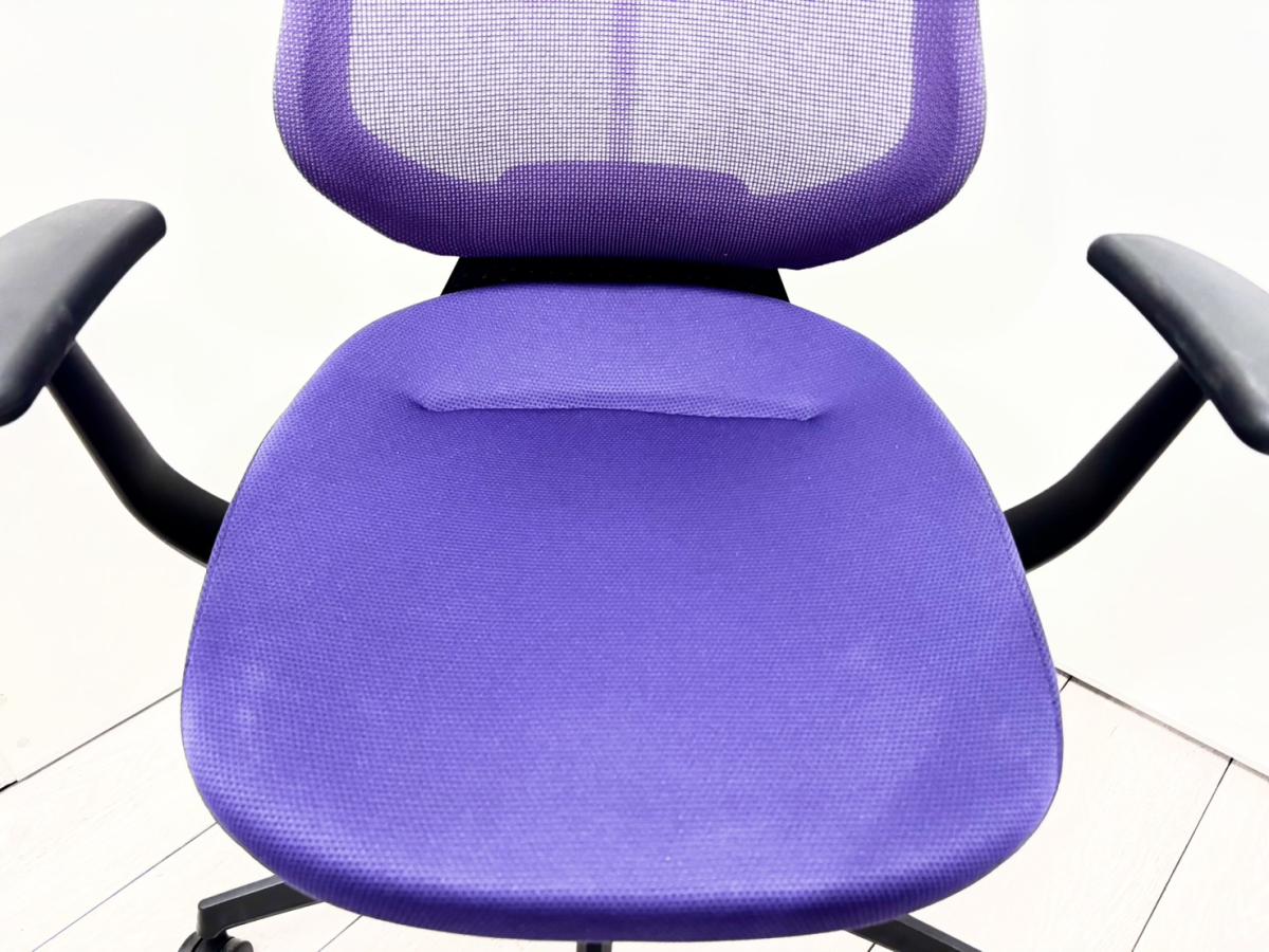 【クレジット決済可】【イスとひとつになれる新感覚!360°揺れて体を自由に動かせる「グライディング・メカ」搭載!】■コクヨ(KOKUYO)製 イング(ing)チェア 肘付ハイバック ■パープル■背面メッシュタイプ ■固定肘【2603】弊社使用欄【A01068205】