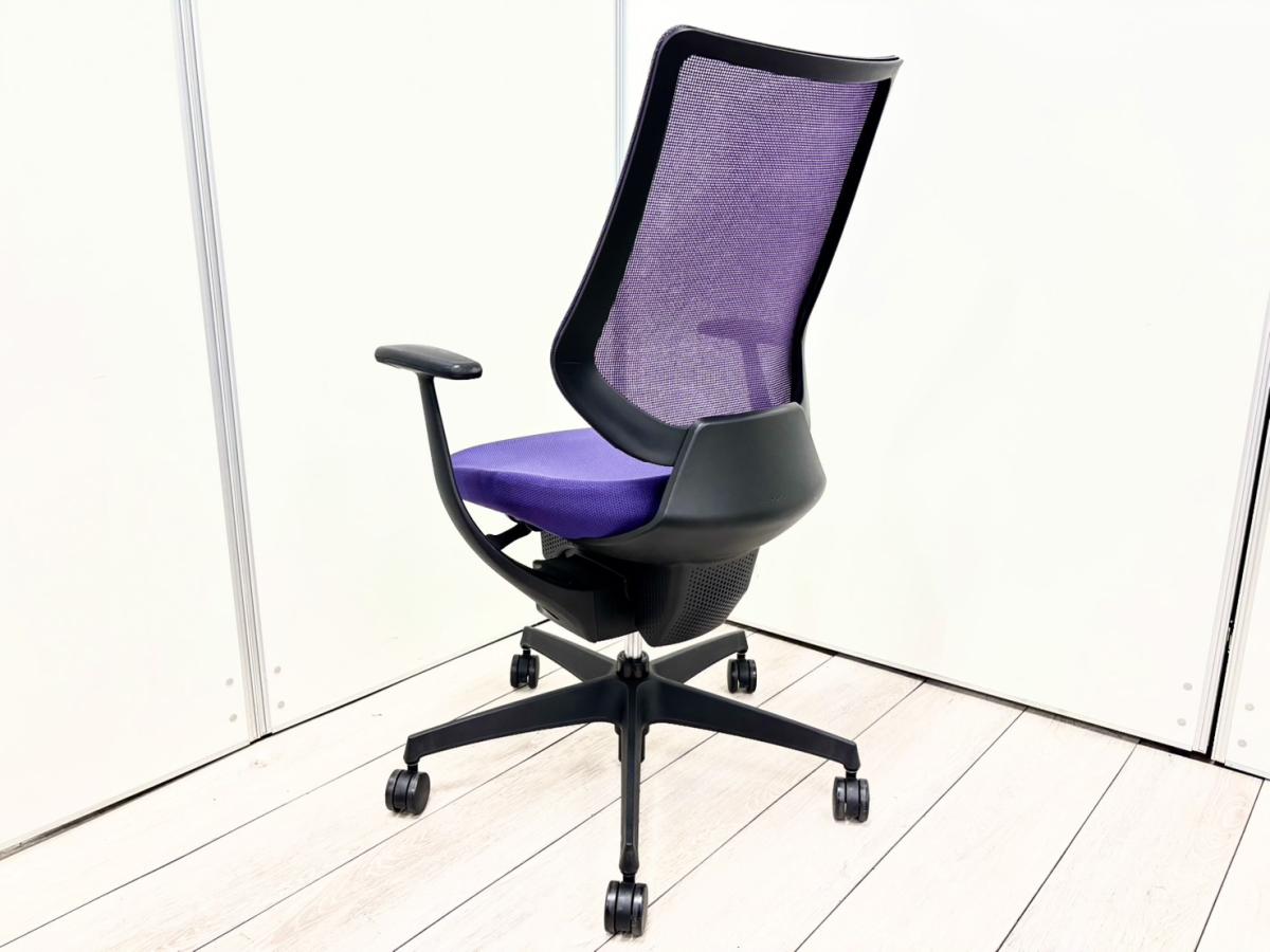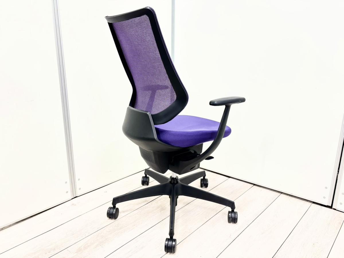 【イスとひとつになれる新感覚!360°揺れて体を自由に動かせる「グライディング・メカ」搭載!】■コクヨ(KOKUYO)製 イング(ing)チェア 肘付ハイバック ■パープル■背面メッシュタイプ ■固定肘【2603】弊社使用欄【A01068205】