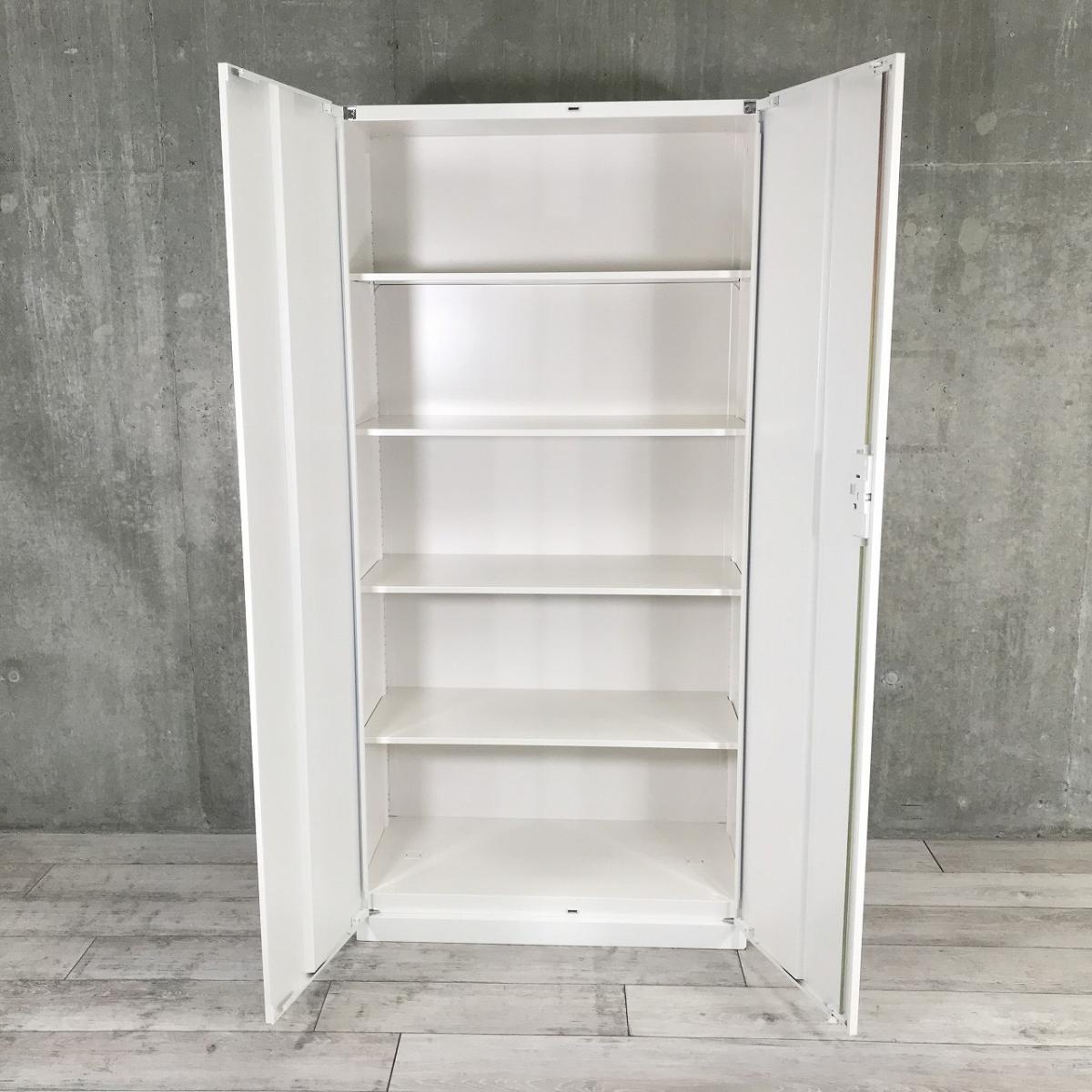 生興 QUWALL 鍵付きキャビネット 両開き書庫 ホワイト シリンダー錠 A4×5段分収納が可能です- 名古屋千種店