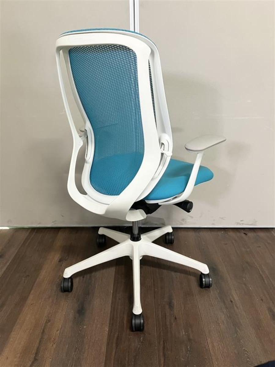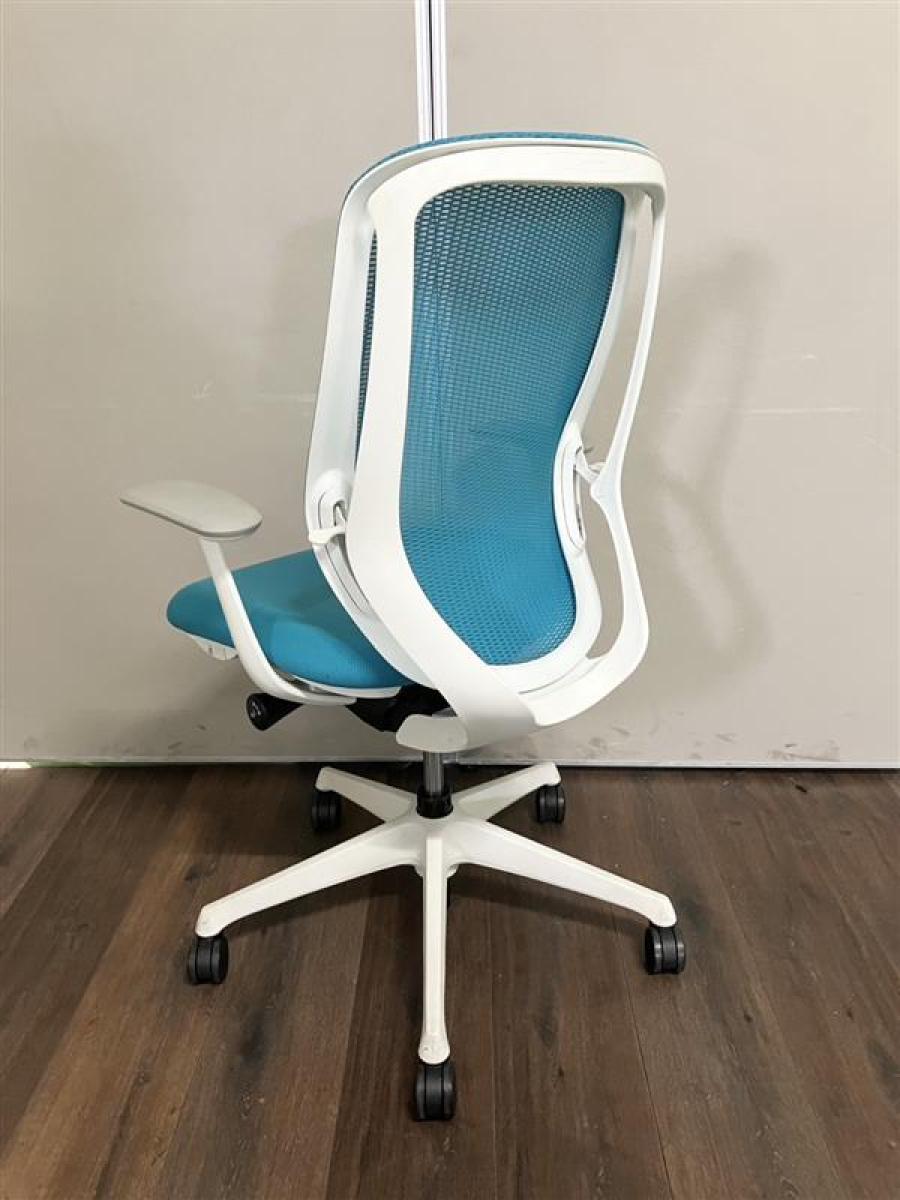 【訳アリ品】背のカーブを変えられる!新感覚のオフィスシーティング!包み込まれるような快適な座り心地! ■オカムラ/シルフィーチェア/ブルーグリーン 可動肘付 ※上下昇降不良