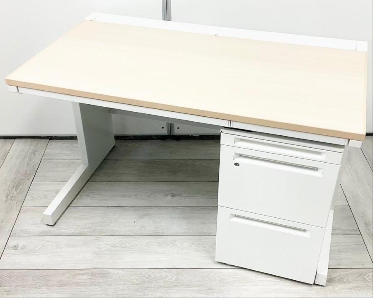 【明るくすっきりとしたワークスペースを演出!】■内田洋行(UCHIDA)製 ■スカエナ(SCAENA)シリーズ ■平机+ワゴンセット ■引き出し付き ■W1200×D700×H720㎜ ■配線Sタイプ ■天板:ナチュラル/本体:ホワイト ※ワゴンは在庫状況によって変動致します。※配線孔の形状が異なる場合がございます。お問い合わせくださいませ。【AD】- 足立・葛飾店