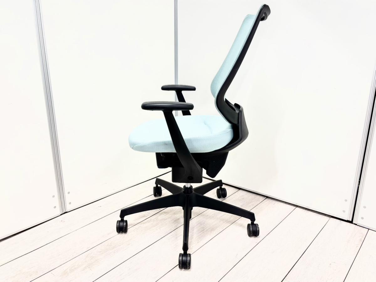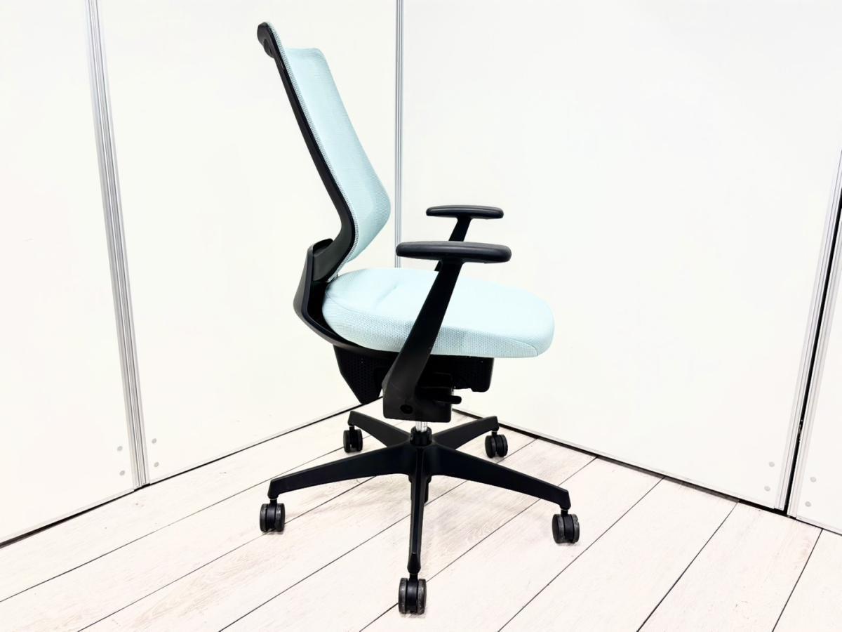 コクヨ ing(イング) バーチカルタイプ 背:メッシュ 固定肘 アッシュターコイズ×ブラックフレーム×ブラック樹脂脚 オリジナリティあふれる逸品