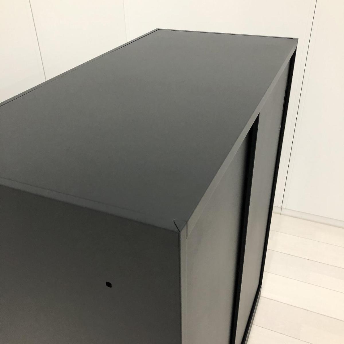 【スライド引き戸だから開閉スペースに困りません!!】■イトーキ(ITOKI)製 エスキャビネット(eS) 引き違い書庫 2枚引き違い ローキャビネット ■ベース付き ■シリンダー錠 ■ブラック- 茨城南店